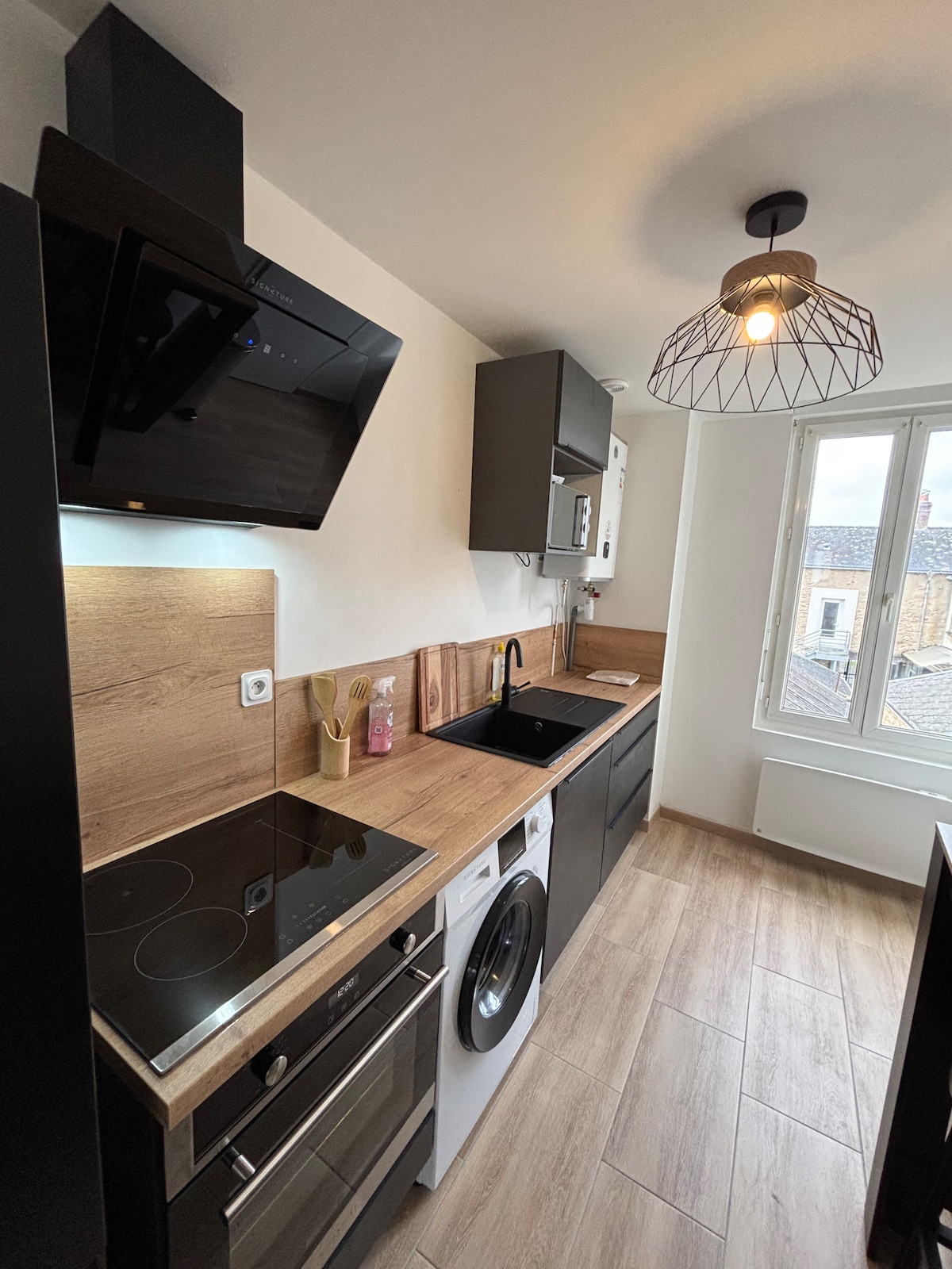 Profitez d'un appartement au coeur de Laval, dans une rue animée mais au calme côté cour. Situé à proximité de tous commerces, de la gare (15min à pied) ainsi que du centre historique. Vous serez hébergés dans notre logement tout confort comprenant une cuisine équipée, un salon séjour avec un espace nuit douillet. Attention aux grands, le plafond pourrait vous chatouiller les cheveux (2m de hauteur sous plafond).