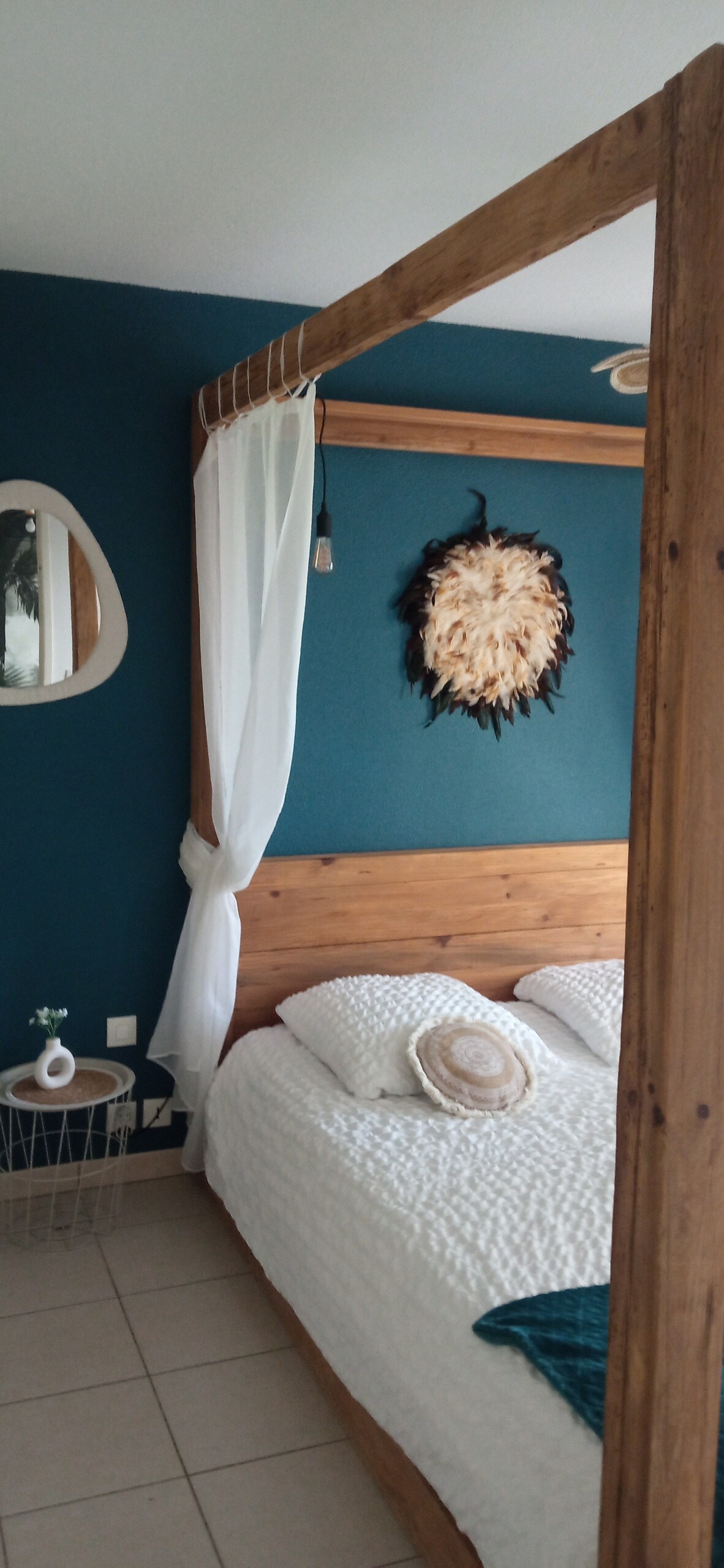 Chambre indépendante sur le terrain des propriétaires , possédant un grand lit double 160×200 , lit bébé Draps et serviettes fournis Pas de point cuisson juste micro ondes frigo bureau table chaises douche lavabo tv ,wifi clim réversible WC terrasse avec table chaises et barbecue entrée par le petit portillon gris avec la cloche ,en haut des marches à gauche . Grand parking privé .boite à clés ,quartier calme Proche commerces circuit caserne hôpital puy du fou 60 kms