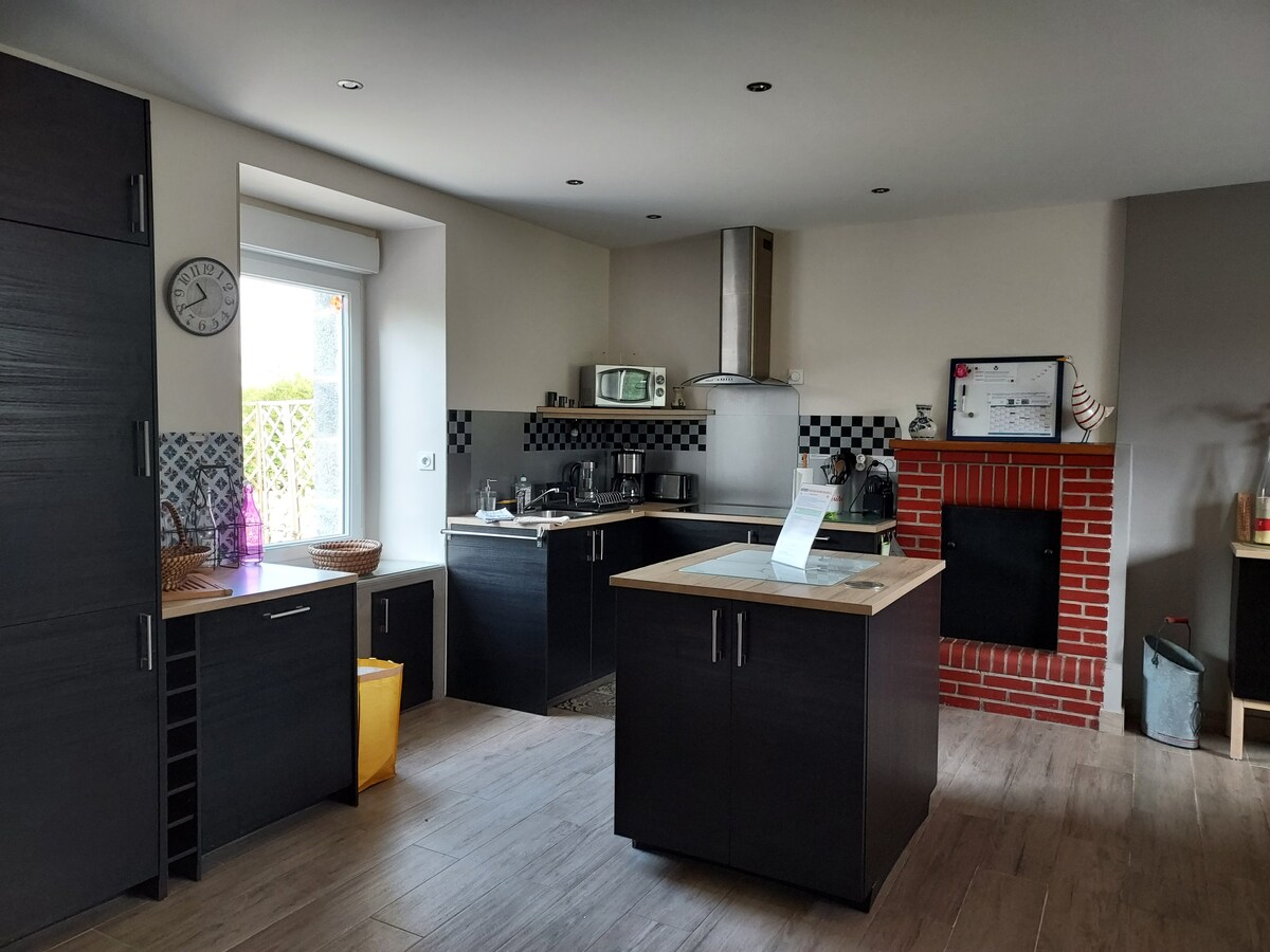 Détendez-vous dans ce logement calme et élégant et profitez de la nature environnante. Gite individuel, cuisine, salon, salle de bain et chambre avec lit double. Logement typique de la région. Sur un terrain de 2 hectares arboré, on profite pleinement du calme et de la nature. Nous sommes tout deux issu de la restauration et sauront vous accueillir avec soins. C'est la campagne verdoyante qui sera votre environnement. Les ballades sont nombreuses et les centres d’intérêts proches en voiture.