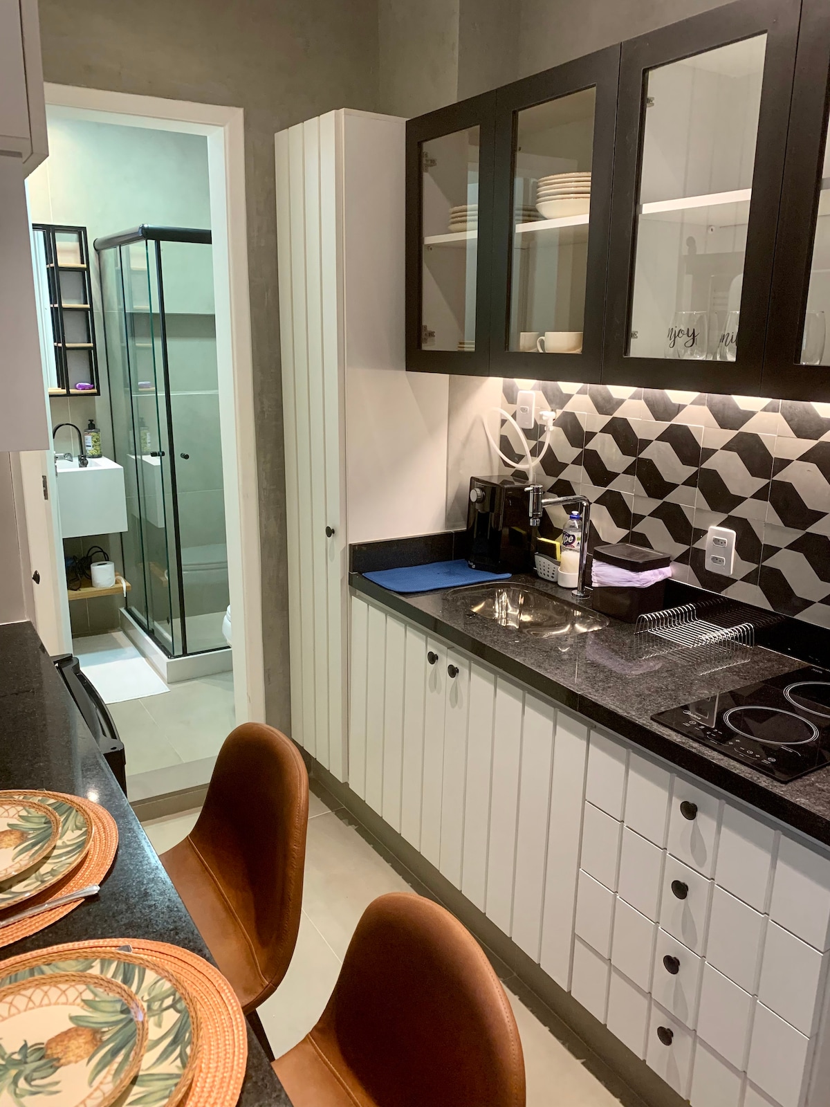 Loft unique avec son propre style, super bien équipé, moderne, 01 lit Queen, 01 canapé-lit, espace de travail et Wi-Fi. Cuisine avec plaque de cuisson, micro-ondes et machine Nespresso. Espace de service complet. Climatisation split. Fenêtre anti-bruit, très bien situé, en face, à proximité des bars, restaurants, marchés, magasins, métro et shopping. Accès facile à la plage, à proximité d'options de location de vélos. Place de parking à l'intérieur de la copropriété, et deux ascenseurs (social et service).
