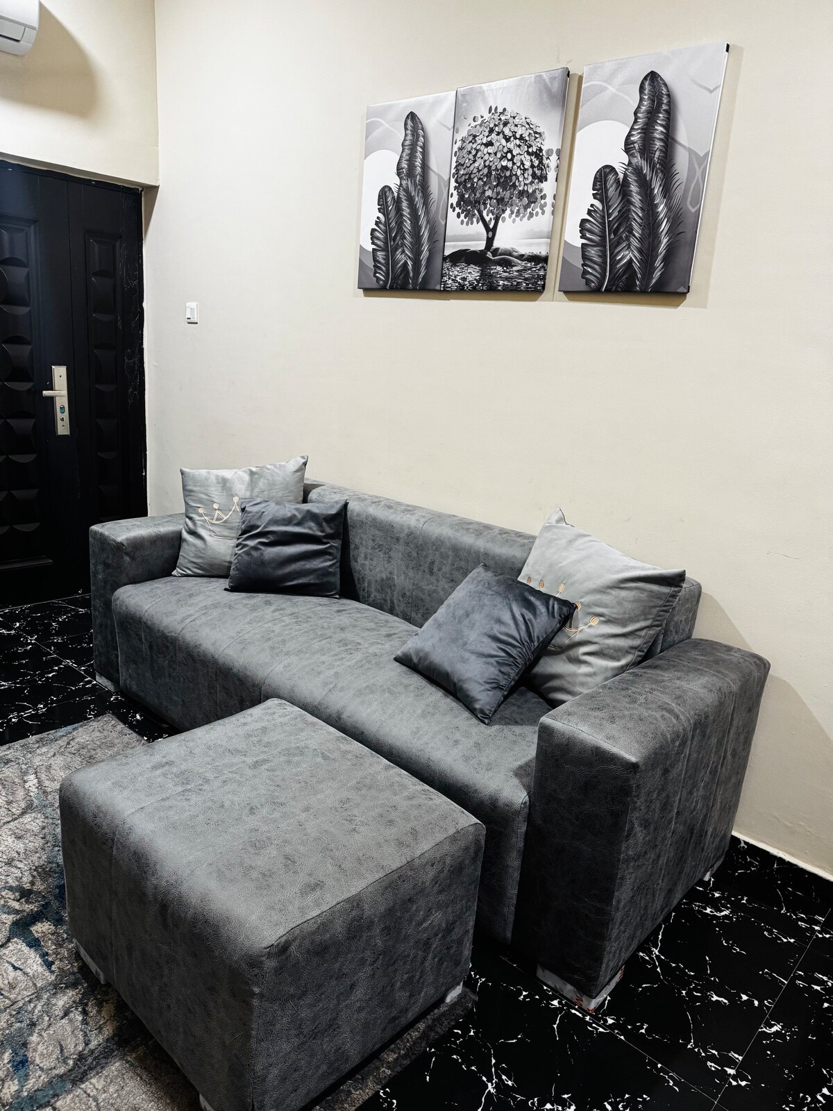 Cet appartement est situé dans Mariville Homes Estate, une communauté résidentielle fermée près de Spintex Road, près de Manet Junction. Idéalement située à seulement 15 minutes en voiture de l'aéroport, la propriété offre un environnement sécurisé et serein. Le domaine est fermé et surveillé 24h/24 par une sécurité privée, assurant un accès contrôlé. L'appartement dispose de deux chambres et peut confortablement accueillir jusqu'à quatre voyageurs. Les deux chambres sont en suite et disposent de lits queen size.