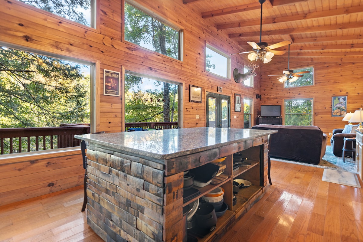 Impossible de battre l'emplacement ! Nichée dans les bois de la station de Cliffview, cette cabane privée et récemment rénovée est prête pour votre prochaine escapade. Frog Song a toujours été un favori des voyageurs au fil des ans car il est proche de toutes les activités de randonnée, de tyrolienne, de kayak souterrain et d'escalade, mais il est privé et isolé. Profitez du nouveau grand espace couvert avec jacuzzi, sièges extérieurs, télévision et brasero. Vous ne voudrez plus quitter ! Découvrez cette charmante cabane à RRG. Randonnée, escalade, détente, répétition
