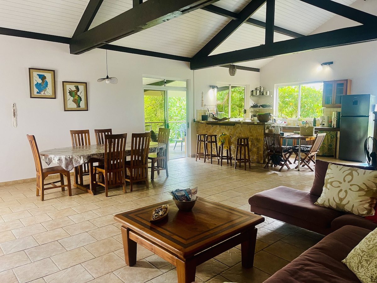 Découvrez cette maison confortable et entièrement équipée, offrant une vue imprenable sur le lagon. Idéale pour une famille, un couple ou un groupe d'amis en quête de détente, cette propriété vous accueille dans un lieu paisible. Profitez de moments de calme et de tranquillité tout en admirant le paysage paradisiaque depuis votre terrasse. Un endroit parfait pour des vacances inoubliables.