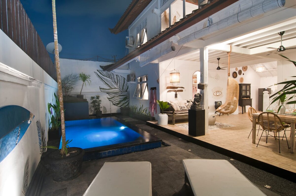 This spacious, open-air villa combines modern comfort in a renovated traditional Balinese villa. Your private pool, luxurious king-size beds, and 5* quality bed sheets ensure a perfect holiday experience. Our high speed internet makes it perfect for both holiday and work-stayation. A 5min walk away from the scenic double six beach, you may enjoy the surf or enjoy Bali's unforgettable slunset over a drink at a bar. Daily cleaning and concierge service ensures a relaxed and unforgettable stay.