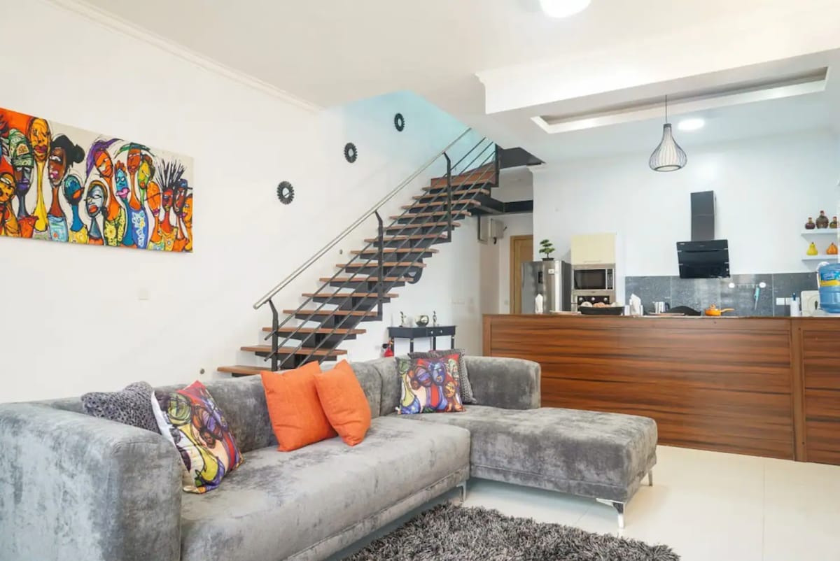 Un charmant caractère industriel et un confort chaleureux haut de gamme. Une promenade tranquille loin des magasins, des restaurants et de la vie nocturne de l'Admiralty Way, Lekki Phase 1. Détendez-vous dans la piscine ou profitez de films par satellite, Netflix ou Amazon. Wi-Fi en fibre optique ultra-rapide. Alimentation sans interruption du générateur pour un confort AC 24h/24 et 7j/7. Appartement calme. Ne convient pas aux rassemblements. Strictement non-fumeur. Veuillez ne pas réserver cet appartement si un voyageur est fumeur.