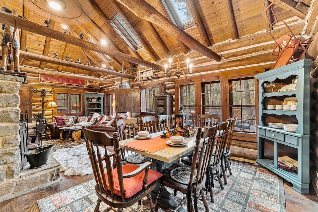 Au plus profond de notre psyché se trouve une image romantique, celle d'une cabane en rondins nichée dans les bois, perchée au-dessus d'un ruisseau de truites. À l'intérieur, il y a peut-être un tapis en peau de mouton devant une grande cheminée, un coin lecture et le loft de rêve d'un enfant. Ou peut-être que vous êtes sur la terrasse, un matin frais emmitouflé et sirotant du cacao sur une chaise à bascule, ou des nuits à tremper des os douloureux et à vous imprégner des sons du ruisseau et des enfants en dessous rôtissant des smores au coin du feu. Faites de ce rêve une réalité !
