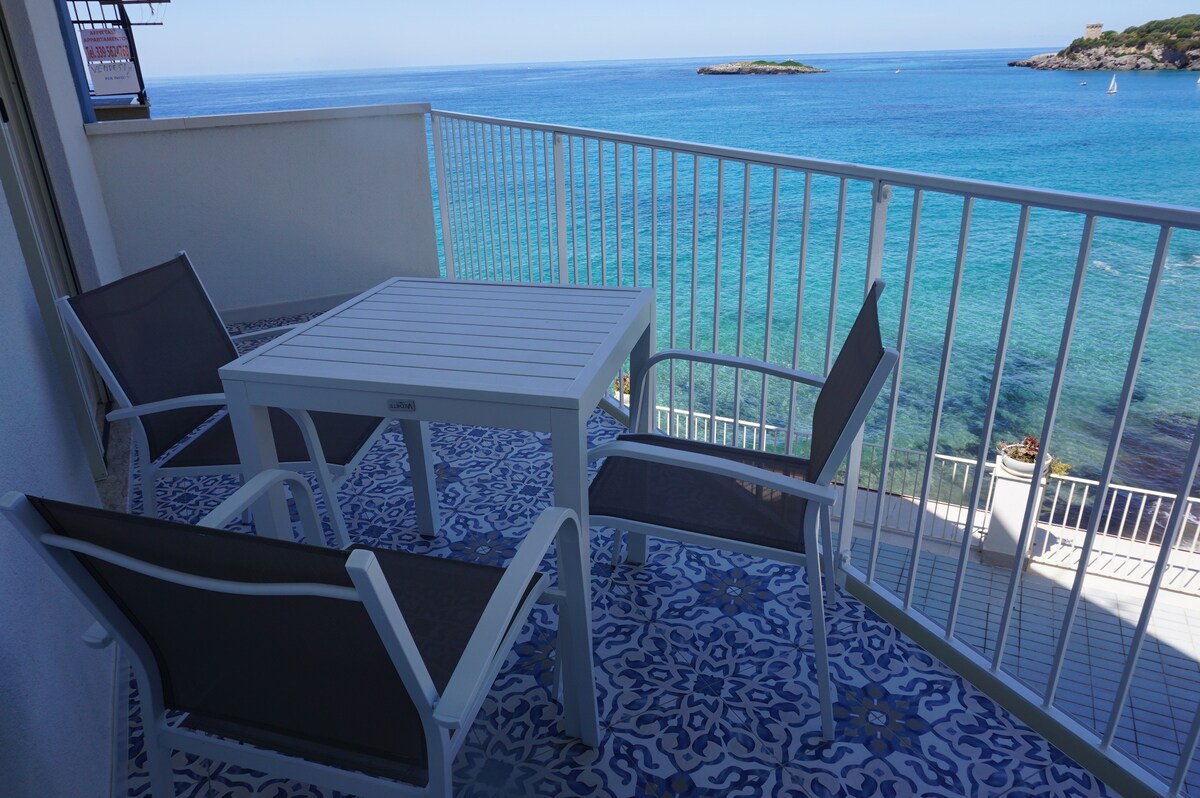 Appartement récemment meublé (60 m²) entouré d'oliviers dans une position élevée surplombant la mer. Les voyageurs ont à leur disposition une terrasse privée avec des sièges, un salon/salle à manger avec un canapé-lit simple supplémentaire, une cuisine bien équipée, une grande chambre avec un lit double et un lit simple supplémentaire, une salle de bain avec douche et toilettes et un parking gratuit sur place. La distance est de 300 mètres de la plage et de 250 m du port et de l'épicerie.
