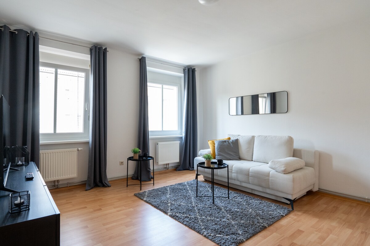 En séjournant dans ce logement central de 70m² situé au centre de ce logement central, toi et famille seront à deux pas des lieux importants. 2 minutes de la place principale, >10 min de l'université. Gare, Asia Spa à environ 15 minutes. Tous les commerces dans les environs immédiats. Des trajets relativement courts vers le/la Prebichl, le Semmering, le RedBull Ring ou l'Air Power. Convient aux familles, pour se détendre de la vie quotidienne ou tout simplement pour dormir après une nuit dans les nombreux événements ou bars Leobener connus.