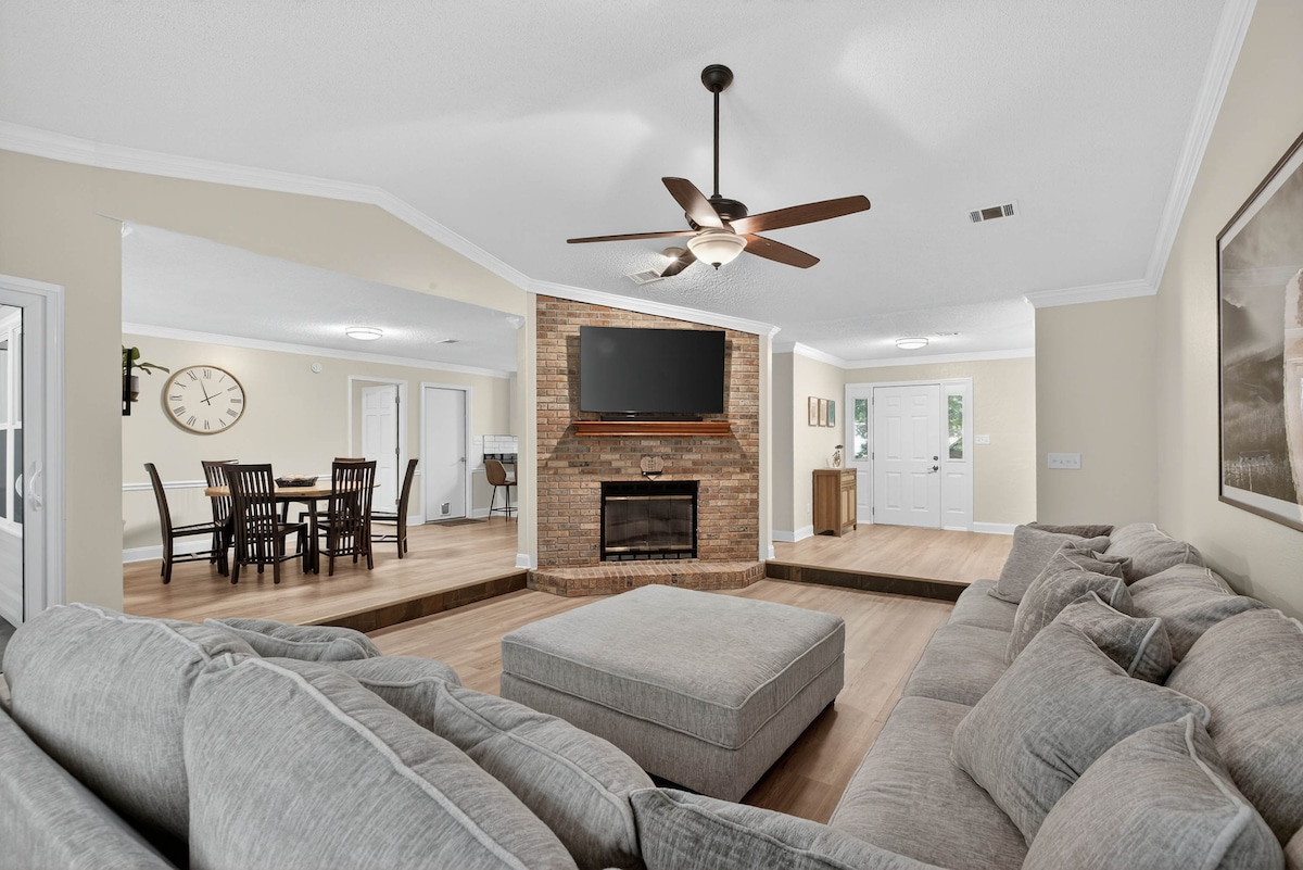 Votre escapade de groupe idéale commence ici : divertissement, espace et souvenirs vous attendent ! Ce ranch de 218 m² sur 1,2 hectares est équipé de tout ce dont vous avez besoin : 11 lits, une cuisine équipée, de nombreux sièges confortables et des divertissements à l'infini. Plongez dans la piscine, détendez-vous dans le jacuzzi, jouez au basket, jouez au Corn-Hole ou rassemblez-vous autour du foyer. Avec une télévision connectée, une connexion wifi ultra-rapide, des jeux et plus encore, vous ne vous ennuierez pas un instant. Proche de tout : privé, serein et AMUSANT !