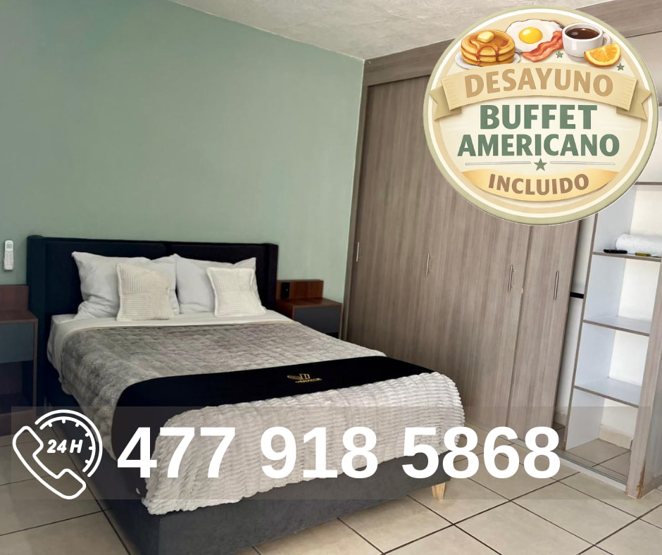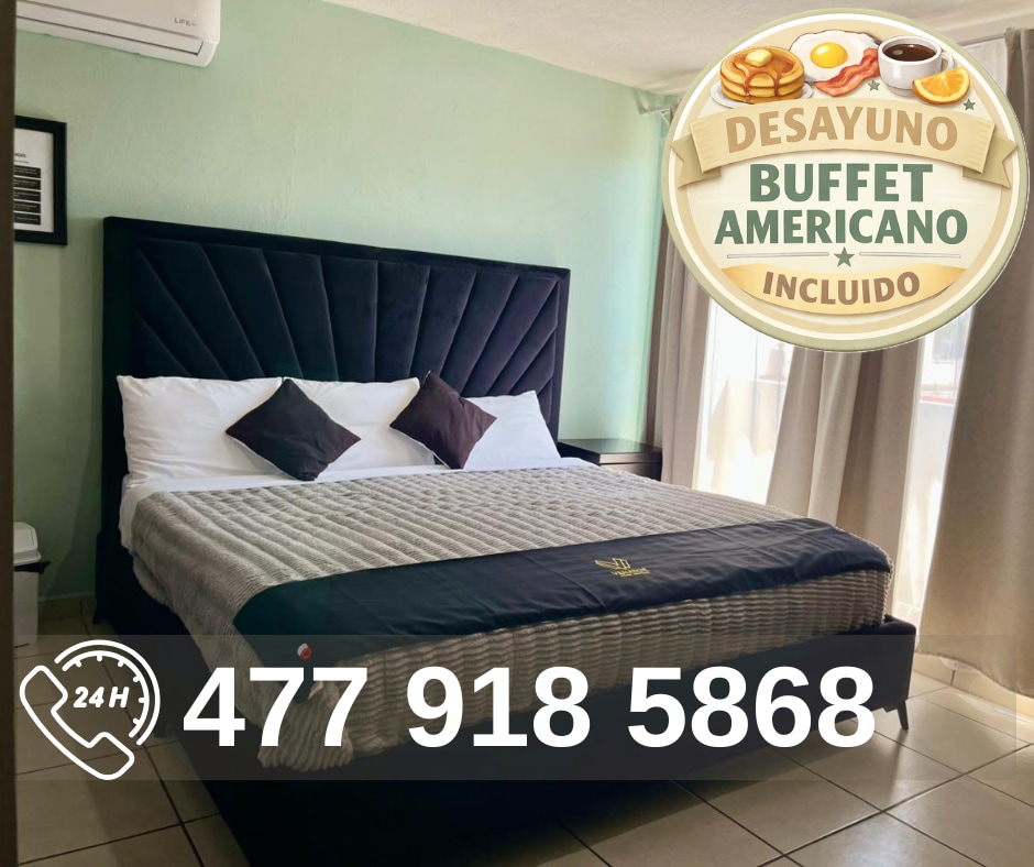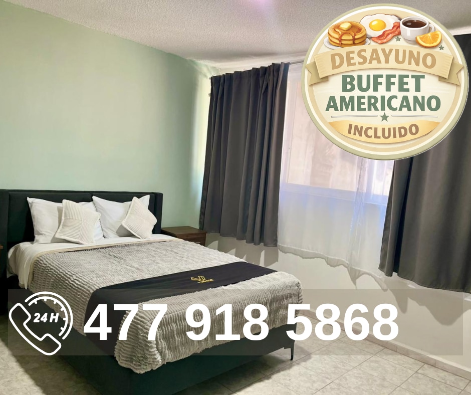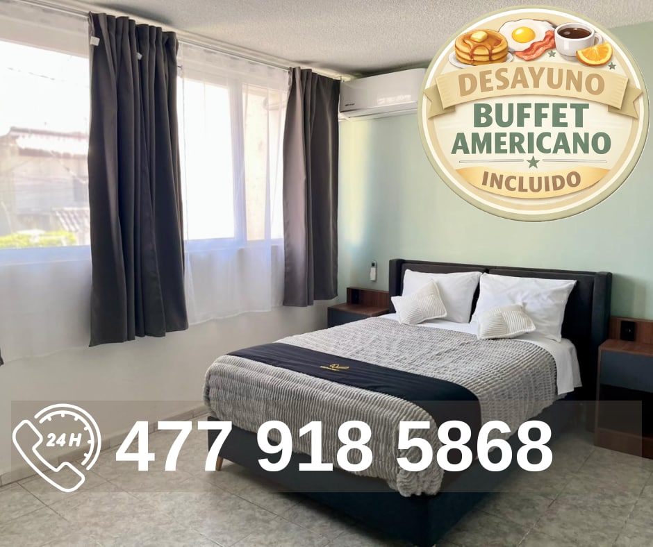 Disfruta de tu propio rincón privado en el corazón de León. Esta suite destaca por su terraza exclusiva, un espacio acogedor y tranquilo diseñado para relajarte al aire libre después de un día de compras o trabajo. • El Espacio: 2 camas Queen y mobiliario cómodo. • Terraza: Ideal para un café con total privacidad. • Seguridad: Estacionamiento cerrado visible desde tu suite. Plus: Baño impecable (presión y temperatura garantizada) y acceso a cocina equipada por piso.