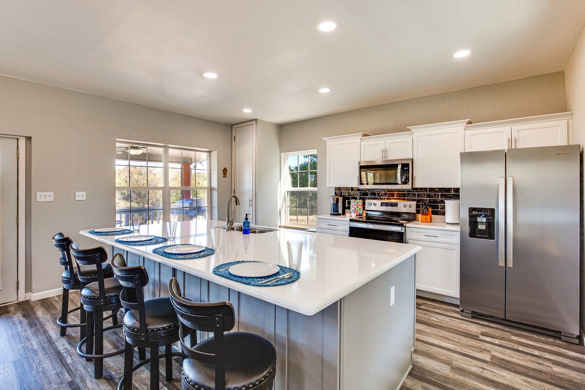 Évadez-vous dans notre maison de campagne moderne de 4 chambres à Anna, près du centre-ville historique de McKinney. Pouvant accueillir confortablement 12 personnes, cette retraite est parfaite pour les familles et les groupes. Profitez d'une cheminée en pierre, d'un baby-foot et d'un foyer extérieur. C'est un espace lumineux et aéré qui allie charme rustique et équipements modernes pour votre escapade parfaite dans le nord du Texas.