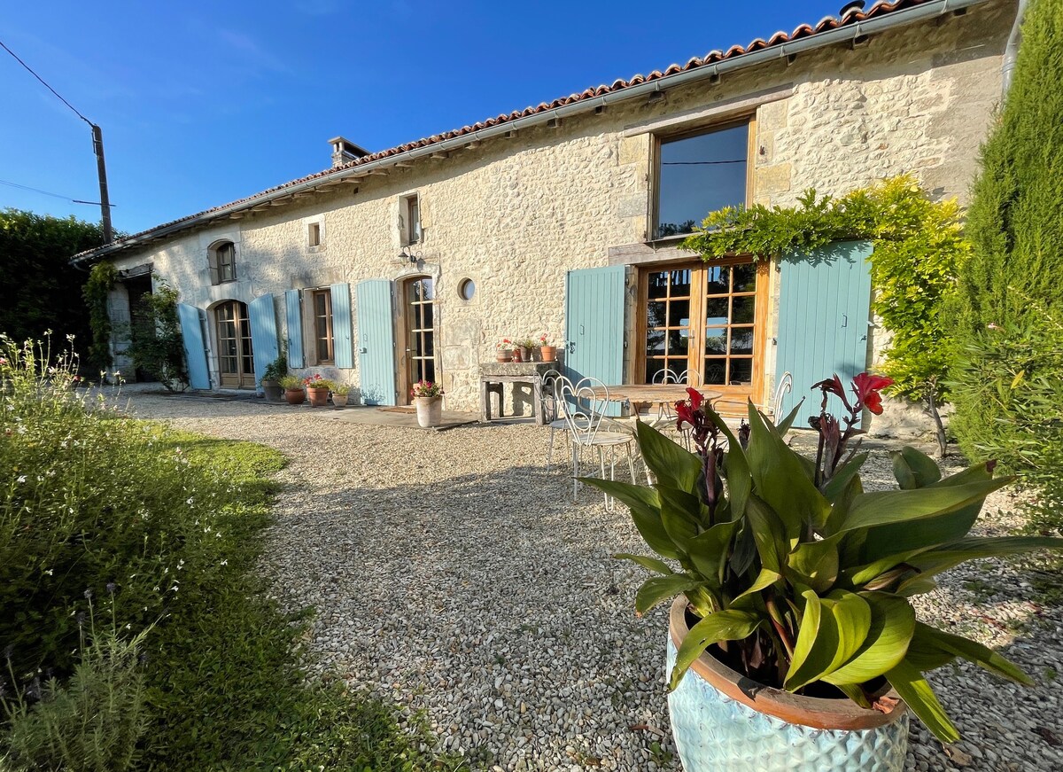 Welcome to our beautifully restored traditional 19th-century pigeonnier gîte in the heart of Cognac’s Grande Champagne region. Carefully renovated to offer a spacious open-plan layout with air-conditioning & a pellet burner, suitable for all seasons. Designed for your ultimate comfort, every detail has been crafted to ensure a memorable stay, from modern amenities to those charming rustic touches. Perfect for those special celebrations or a rejuvenating getaway. The ultimate retreat for 2026.