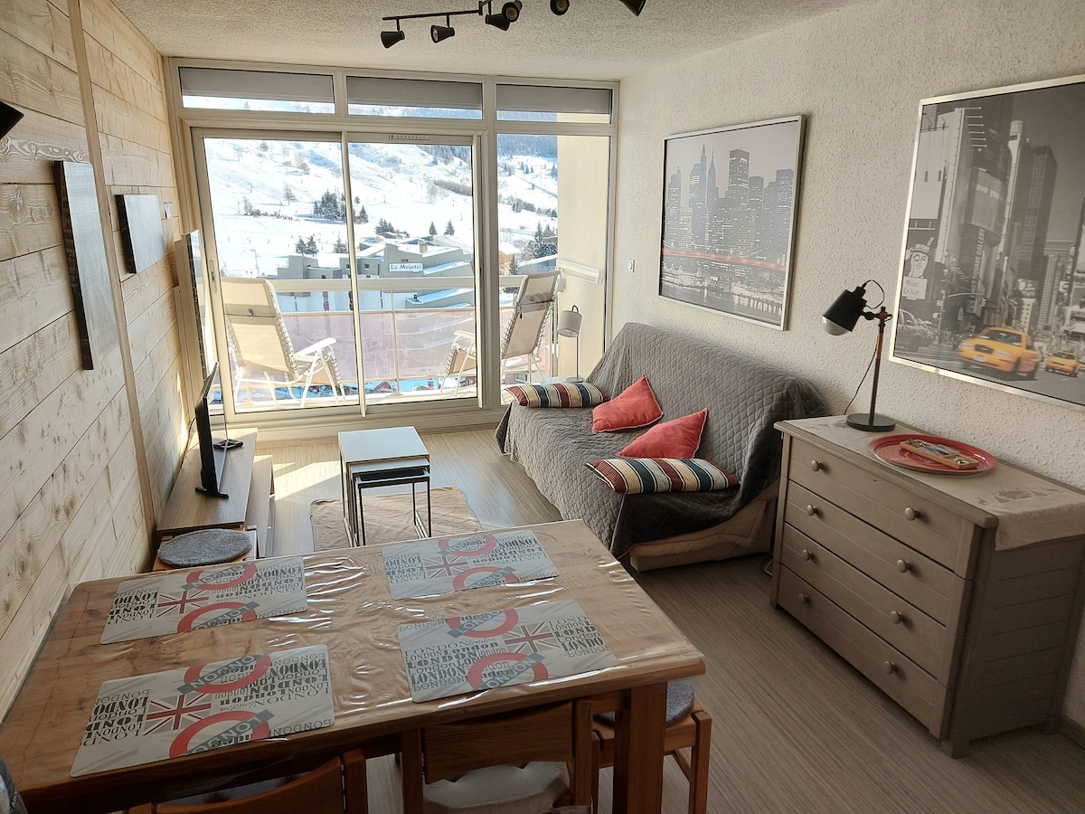 Studio de 12m2 au pied des pistes en plein centre station ( résidence Côte Brune, à 3 minutes à pied du Jandri Express). Séjour avec canapé convertible 130x190 ( couette 200x200 + 2 oreillers) et télévision écran plat, salle d'eau avec douche, lavabo et WC. Kitchenette équipée, micro-ondes, four, machine à café Senseo. Casier à skis. Proximité tous commerces. Résidence avec digicode. Le ménage standard de l'appartement est compris. Les draps et serviettes ne sont pas fournis.