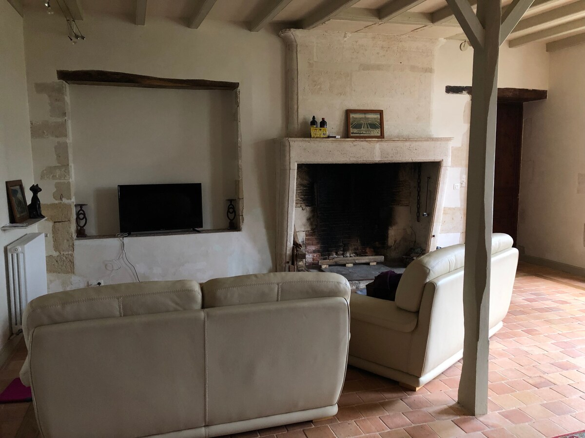 A la campagne, 12 min de Rochefort, 30 min de la Rochelle , dans une maison de 1789, avec le charme d'antan ( séjour avec murs en pierres et tomettes) avec tout le confort moderne. Séjour avec une banquette lit BZ 140, un BZ 1 pers, coin repas, cuisine avec L.linge, L.vaisselle, four, plaque gaz, réf/cong., M ondes, cafetière, bouilloire ... un WC, une chambre avec lit de 140 et penderie (lit parapluie sur demande) et sa salle d'eau avec douche et meuble vasque ( un second gite 4 pers dispo)