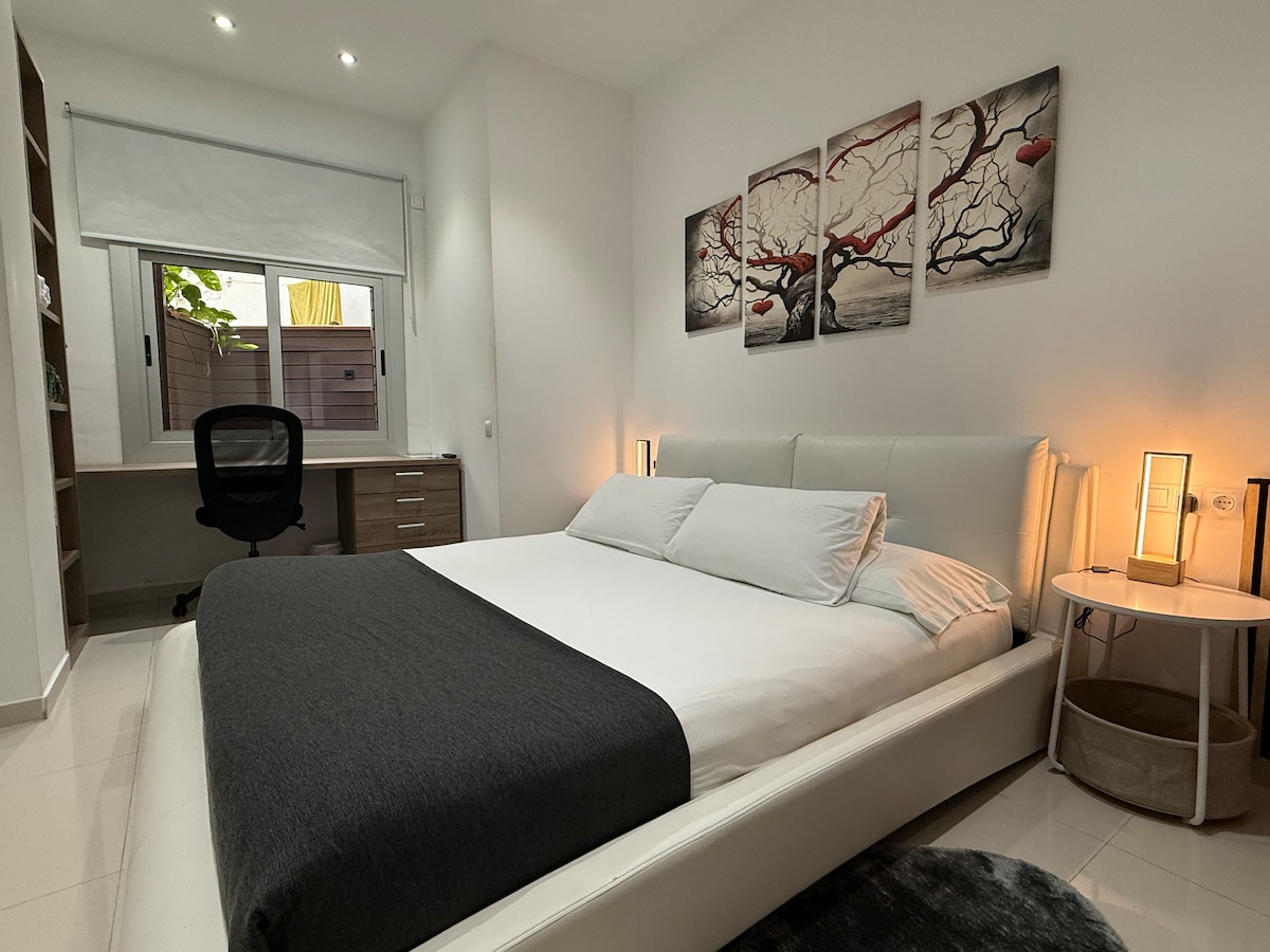 Votre chez-vous avec terrasse, à 8 min de la plage. Détendez-vous dans cet appartement chaleureux conçu pour que vous vous sentiez comme chez vous. Profitez d'une terrasse privée, parfaite pour des petits-déjeuners ensoleillés ou des dîners sous les étoiles. La plage est à deux pas, cuisine équipée, WiFi rapide et check-in flexible. Emplacement idéal près des restaurants, boutiques et transports. Draps et serviettes inclus. Assistance 24/7. Je vous donnerai des conseils pour profiter au maximum.