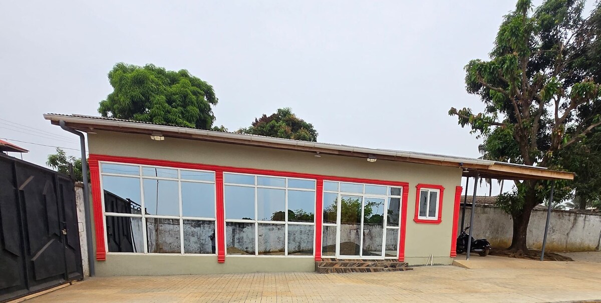 Bienvenue dans notre maison d'hôtes propre, bien éclairée et aérée dans un magnifique cadre tropical non loin de l'université de Cuttington, de l'hôpital Phebe et de la ville de Gbarnga. Nous sommes situés à environ 800 mètres de l'autoroute Gbarnga-Phebe, sur le campus calme du Gbarnga Lutheran Training Center (GLTC). Un puits de forage profond avec filtre et système de chloration assure une eau potable propre (même pour les Occidentaux à boire directement depuis le robinet !). La sécurité 24h/24 offre une sécurité personnelle et une tranquillité d'esprit.