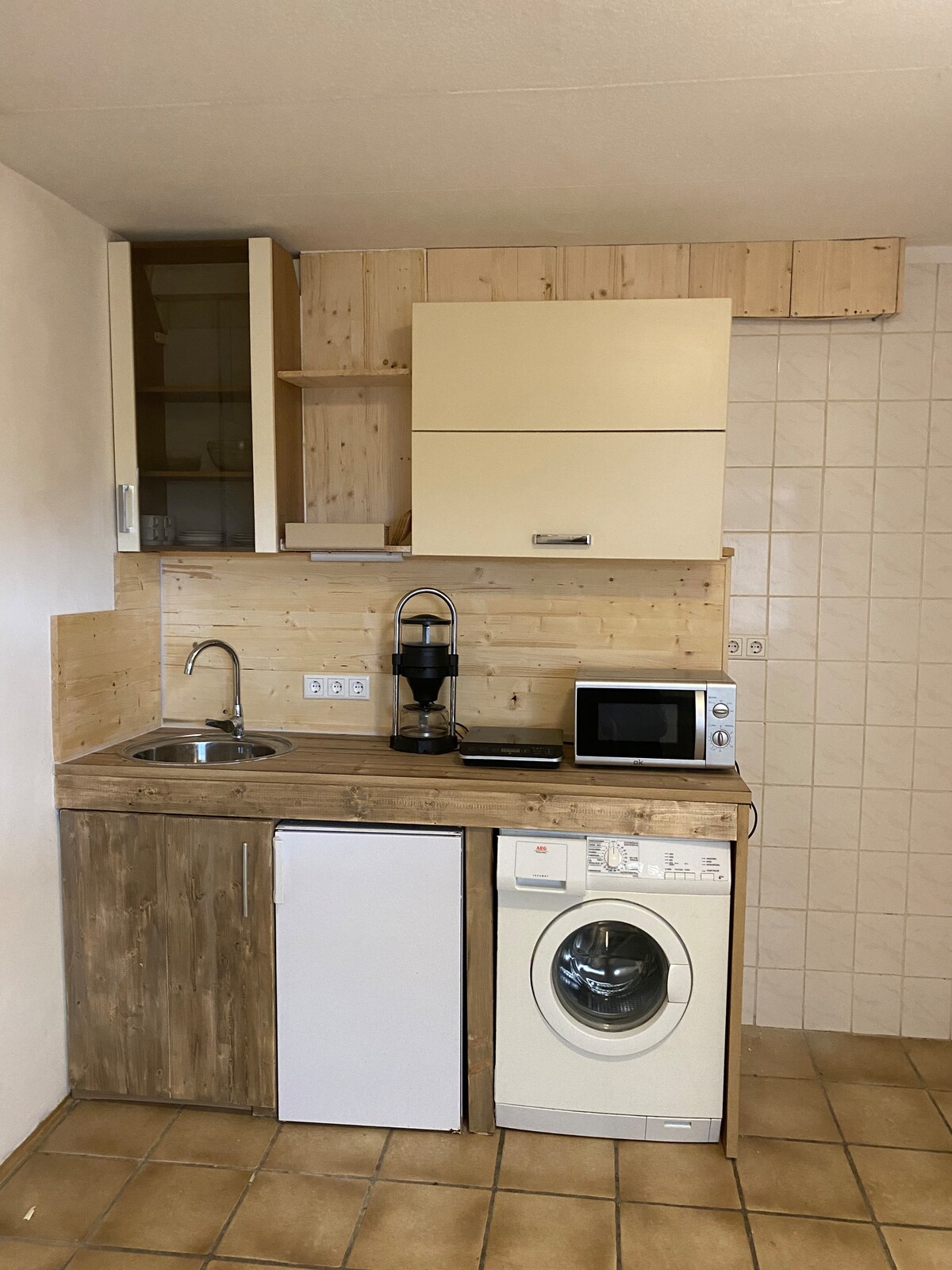 NOUVEAU : Juste à côté de « Mono » se trouve une autre maison, « Nest im Wald ». On peut aussi visiter. Ou les deux… « Mono » est une caravane aménagée il y a des décennies. Au cours d'une rénovation complète, il a reçu en 2020 un squelette de charpente en bois (nouveau toit, nouvelle isolation, etc.) et donc un premier étage. Taille : 3,20 mètres sur 13 mètres. Elle s'appelle « Mono », car son extérieur, ainsi que chaque pièce à l'intérieur, est principalement déterminé par une couleur.