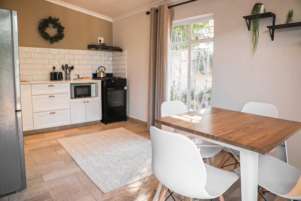 Ce studio est le cadre idéal si vous êtes en ville pour un voyage d'affaires, une formation, une fête ou un mariage ! Situé dans une zone calme et sûre de Lichtenburg et à proximité de toutes les principales attractions. Cadre privé avec son propre jardin. Entrée privée et parking sûr et couvert. Il s'agit d'un cadre acceptant les animaux de compagnie, donc les petits amis de quatre pieds sont les bienvenus pour vous accompagner pendant votre séjour. Les voyageurs peuvent facilement préparer des repas dans l'appartement ou profiter d'un dîner plus sans tracas dans l'un des restaurants locaux.