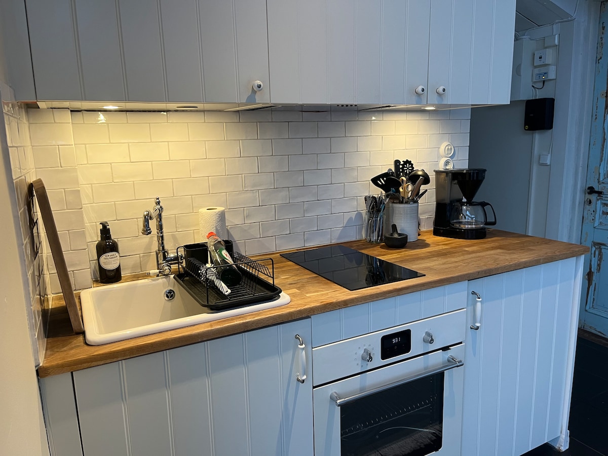 Charmant chalet pouvant accueillir jusqu'à six personnes. Veuillez noter qu'il s'agit d'une cabane plutôt petite et non d'une maison, donc si vous êtes six adultes et que vous n'êtes pas habitués aux cabanes scandinaves, cela peut sembler un peu étroit. Toilettes dans le chalet et accès à une douche/sauna dans un bâtiment adjacent et un belvédère dans le jardin. Le chalet a été entièrement redécoré et une nouvelle cuisine a été installée en septembre 2019. La plupart des meubles datent de 2016. Possibilité d'y accéder en transports en commun, mais c'est encore mieux si vous avez accès à une voiture.