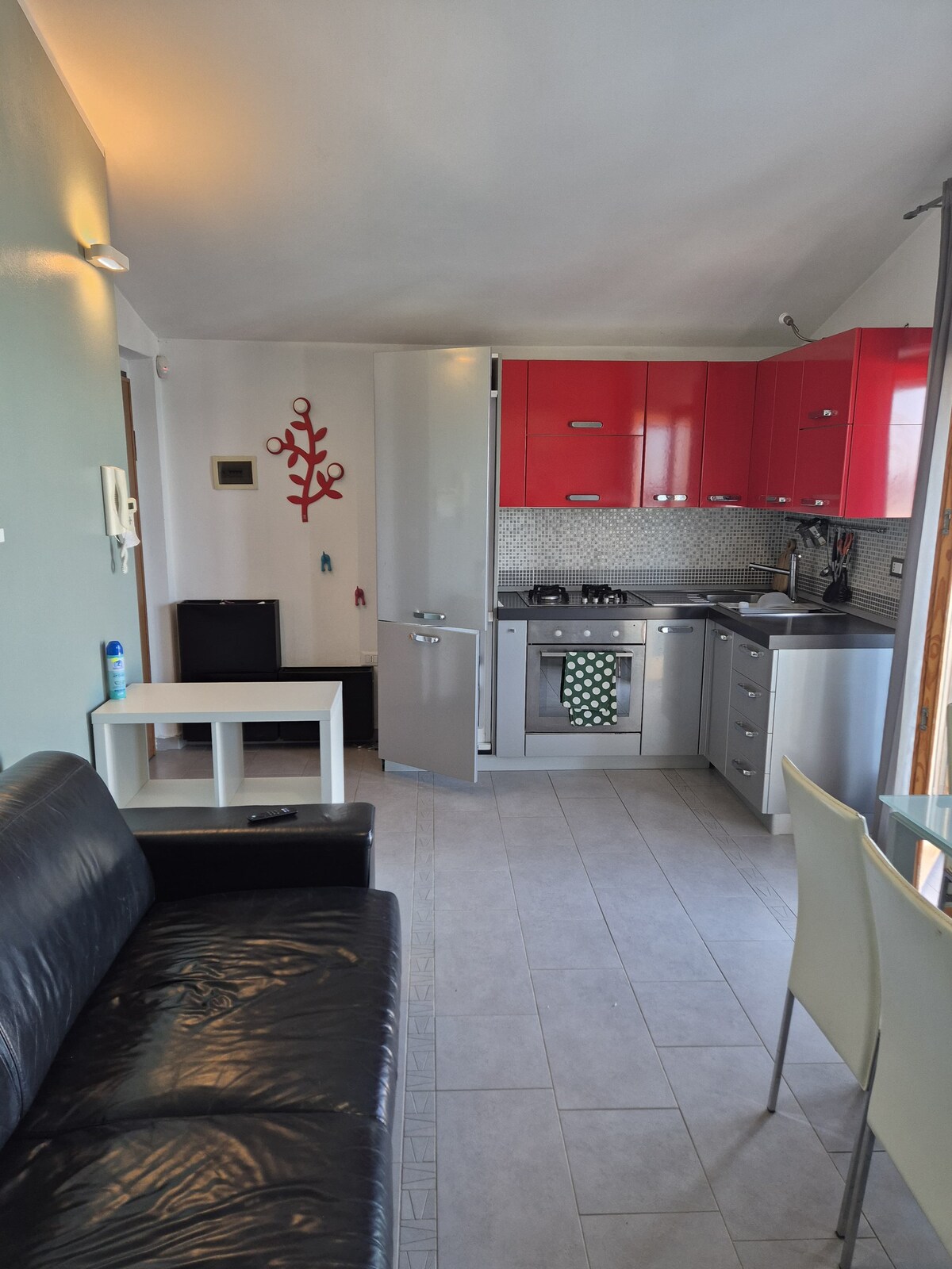 La maison, située dans le cœur historique de Termoli. À l’intérieur, vous trouverez une petite salle de bain avec douche et lave-linge. Une chambre avec un lit double confortable, une commode, une grande armoire et une Smart TV avec Netflix ! À l'entrée, la cuisine équipée de tous les ustensiles, minibar, et une partie aménagée uniquement pour le petit déjeuner avec machine à café en capsules, un presse-agrumes et une bouilloire pour le thé.