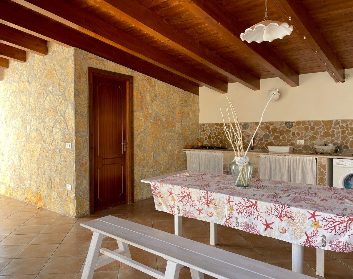 Vous séjournerez au rez-de-chaussée de ma villa à 3 minutes à pied de la mer, composée de deux appartements séparés. *Vous ne partagerez pas tous les espaces extérieurs avec les autres clients*. L'appartement bénéficie d'un grand espace extérieur avec table à manger, canapés et transats, le parking est privé. La villa est située dans l’un des quartiers les plus pittoresques de Scopello, à 200 mètres de la belle plage de Cala Mazzo di Sciacca, et est entourée d’un grand jardin bordé d’arbres et d’une vue imprenable sur la mer