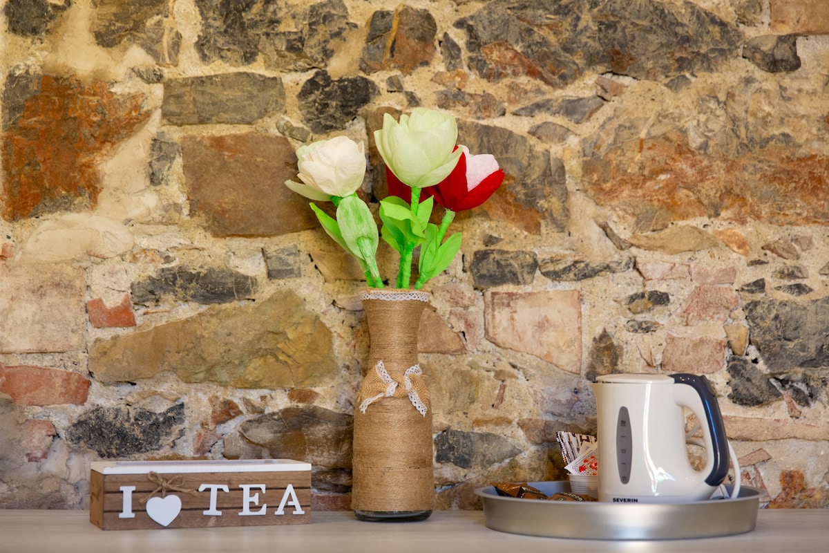 Studios meublés idéaux pour 2 personnes, équipés de linge de maison, produits de toilette jetables, sèche-cheveux, kitchenette équipée, télévision par satellite, Internet. Restaurant adjacent à la propriété. Possibilité de location de vélos électriques. Réductions sur les longs séjours à convenir.