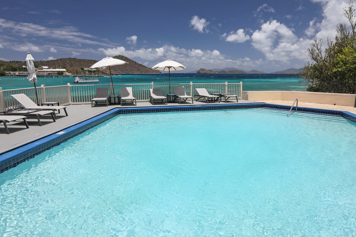 Notre appartement entièrement rénové 1BR/1BA est PARFAIT pour les couples, les petites familles ou une escapade entre amis. Profitez d'une vue imprenable sur l'océan et du bruit des vagues depuis chaque chambre ou depuis votre balcon privé. Admirez des couchers de soleil à couper le souffle et rafraîchissez-vous dans l'une des trois piscines aux eaux cristallines. Situé dans une résidence sécurisée, à quelques pas de la plage, de la piscine en bord de mer et des restaurants en bord de mer. À seulement 10 min de Red Hook (ferries pour St. John et BVI) et Havensight, et à 15 min de l'aéroport : votre escapade parfaite sur l'île ! 🌴