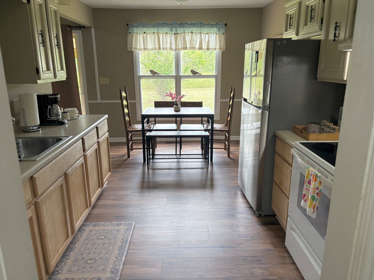 Évadez-vous sous les étoiles. Cette maison modulaire très spacieuse et récemment rénovée attend jusqu'à 8 personnes pour échapper à l'agitation. Détendez-vous sur la terrasse surdimensionnée. Belle cuisine spacieuse équipée pour une grande famille. À quelques minutes de la ferme et distillerie Otter Creek, du lieu de mariage Oak Meadows, du Talladega Speedway, du Silver Lakes Golf, du JSU, du lac Neely Henry, de la rivière Coosa, à 90 minutes de ATL 60 minutes de B'ham. À 20 minutes d'Anniston ou de Gadsden.