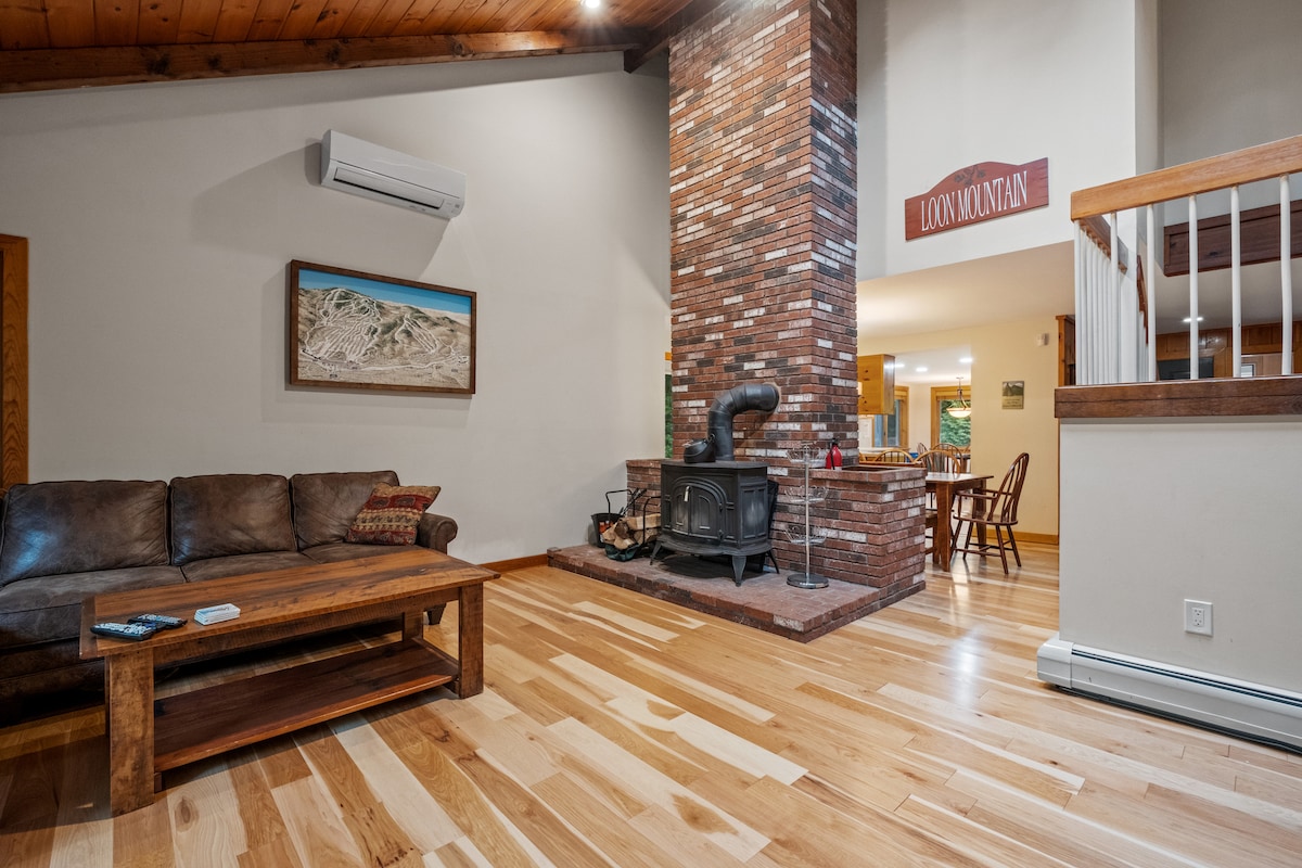 Mountain escape! Located in the White Mountain National Forest sits Loon Mountain House - our 5 bedroom (9 bed), 3.5 bath home stylishly appointed with amazing mountain views. Enjoy the vaulted ceilings, spacious living/sleeping areas, indoor gas fireplace, massive back deck, and a lower level recreation room with hot tub & sauna. Located just 1 mile from Loon's base lodge and Adventure Center. Relax inside or get out and enjoy the great outdoors! There is so much to do and see in Lincoln.