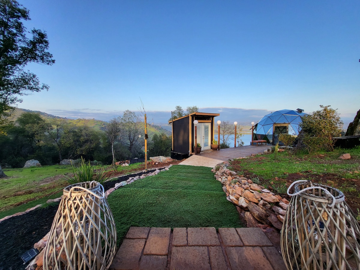 Glasshaus est une superbe structure en forme de dôme de verre conçue pour se fondre parfaitement dans son environnement naturel. Le dôme offre une vue panoramique à 360 degrés sur le majestueux lac New Melones, les collines environnantes et le ciel étoilé. Réveillez-vous au son apaisant de la nature et endormez-vous sous un ciel étoilé.