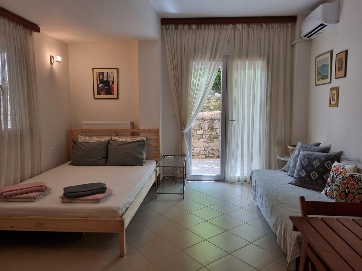 Ένας σύγχρονος και καλαίσθητος χώρος σας υποδέχεται φιλόξενα καλύπτοντας κάθε ανάγκη σας. Διαθέτει άνετο υπνοδωμάτιο με ευρύχωρη ντουλάπα και έξυπνη τηλεόραση, πλήρως εξοπλισμένη κουζίνα, ιδιωτικό μπάνιο, κλιματισμό, δωρεάν wifi. Βρίσκεται σε απόσταση μόλις 5 λεπτά με τα ποδιά από την κεντρική πλατεία της πόλης. Απέναντι υπάρχει σούπερ μάκρετ, φαρμακείο, φούρνος και άλλα καταστήματα. Είμαστε στη διάθεσή σας για όποια πληροφορία χρειαστείτε σχετικά με την περιοχή.