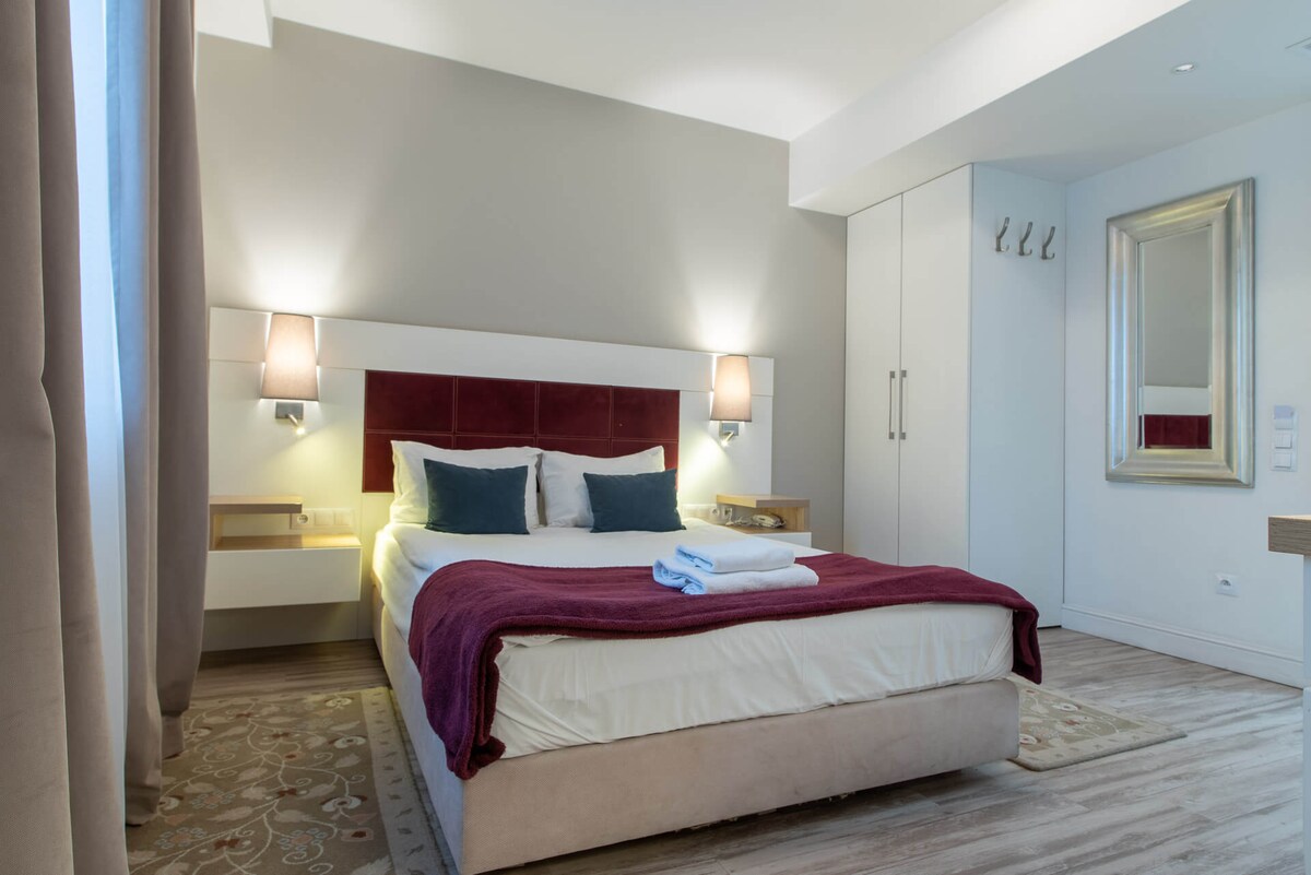 Le logement est confortable et moderne. L'appartement dispose d'une chambre séparée avec armoire, et d'un salon avec une télévision et une table avec 4 chaises. Le coin est inclinable et sert de zone de couchage supplémentaire. Une table et des chaises confortables peuvent servir de salle à manger ou d'espace de travail. La cuisine dispose d'un lave-vaisselle, d'un réfrigérateur, d'une cuisine à gaz et d'une bouilloire électrique. La salle de bain dispose d'une baignoire qui peut servir de douche. Idéal pour les voyages en famille et d'affaires. L'appartement dispose d'un lave-linge et d'un aspirateur.