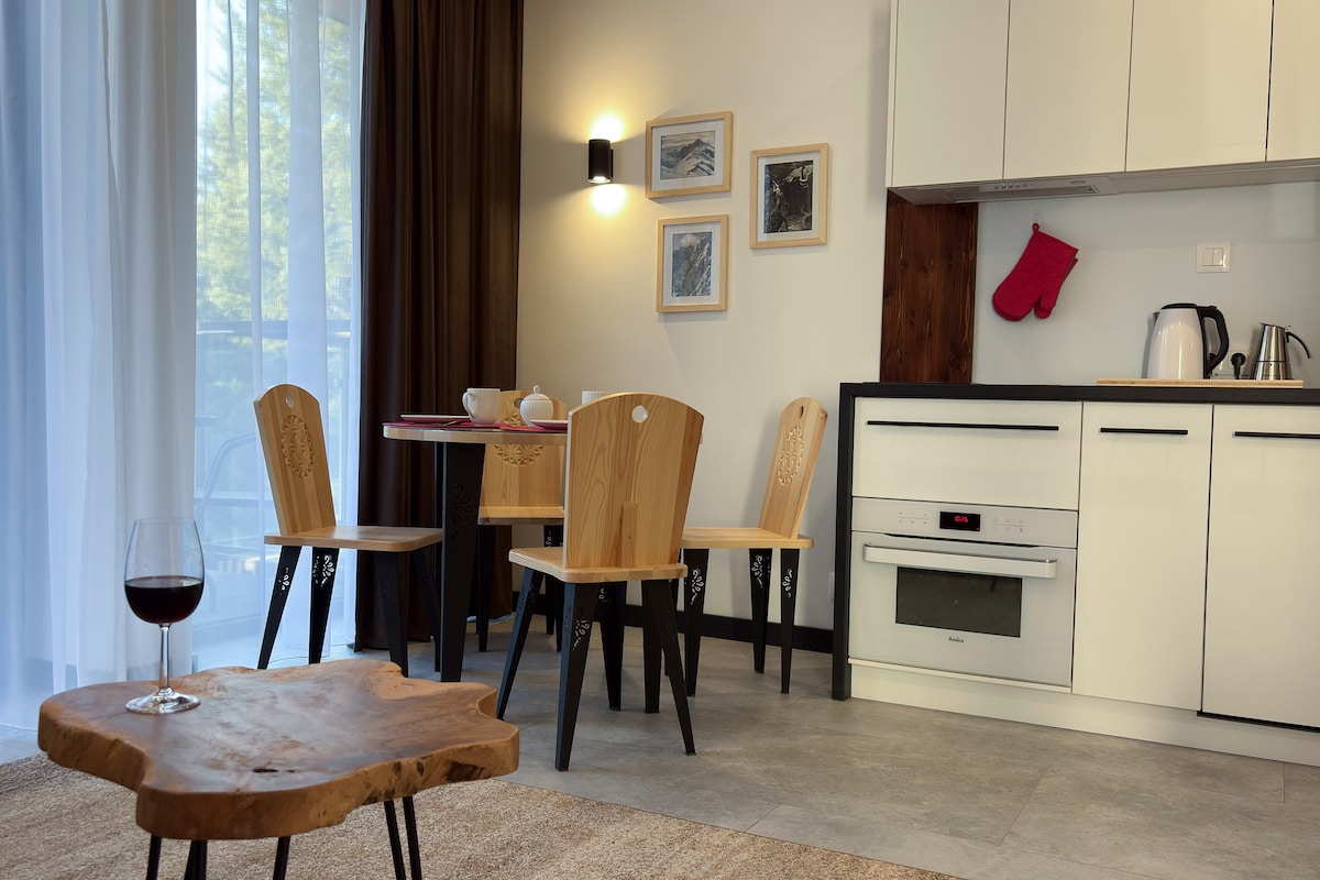 Cet appartement d'une chambre dispose d'un salon avec une kitchenette bien équipée et une salle de bains avec une douche. Un avantage supplémentaire de l'installation est l'espace SPA avec un sauna sec et à vapeur, une tour de graduation de la saumure et un bain à remous. L'accès à l'espace SPA est payant. Vous pourrez utiliser le belvédère avec coin barbecue, buanderie et aire de jeux pour les enfants. La propriété se trouve à une courte distance de l'entrée de la vallée de Kościelska. La région de Chopok est à seulement 10 minutes.