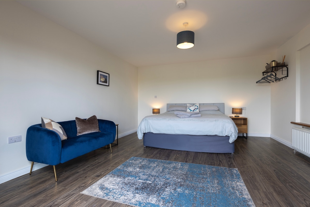 Superbe retraite à la campagne. À 15-20 minutes de la spectaculaire côte nord. Studio à l'étage flambant neuf dans une allée privée avec une vue imprenable sur la vallée de Bann et diverses promenades à la campagne. Accès séparé et espace extérieur avec salle à manger extérieure et barbecue. Décor moderne ouvert avec salle de douche et toilettes séparées. Lit king size et canapé convertible double, donc potentiel pour 3-4 personnes. Kitchenette avec micro-ondes, grille-pain et bouilloire. Plaque de cuisson portable disponible sur demande.⁶