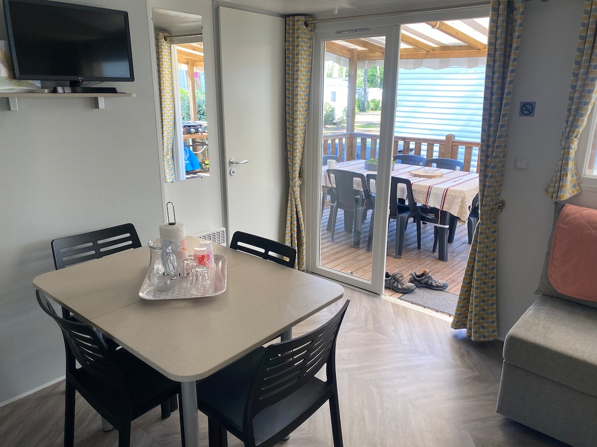 Ressourcez-vous dans cet hébergement niché en pleine nature avec à disposition deux vélos pour vos déplacements et découvertes, la structure touristique est équipé d’un bar d’un restaurant d’une piscine avec toboggan et d’une supérette bien fournie. La structure propose également des animations en journée et soirée. L’océan est à 4 km du camping une piste cyclable vous y amènera en toute sécurité.