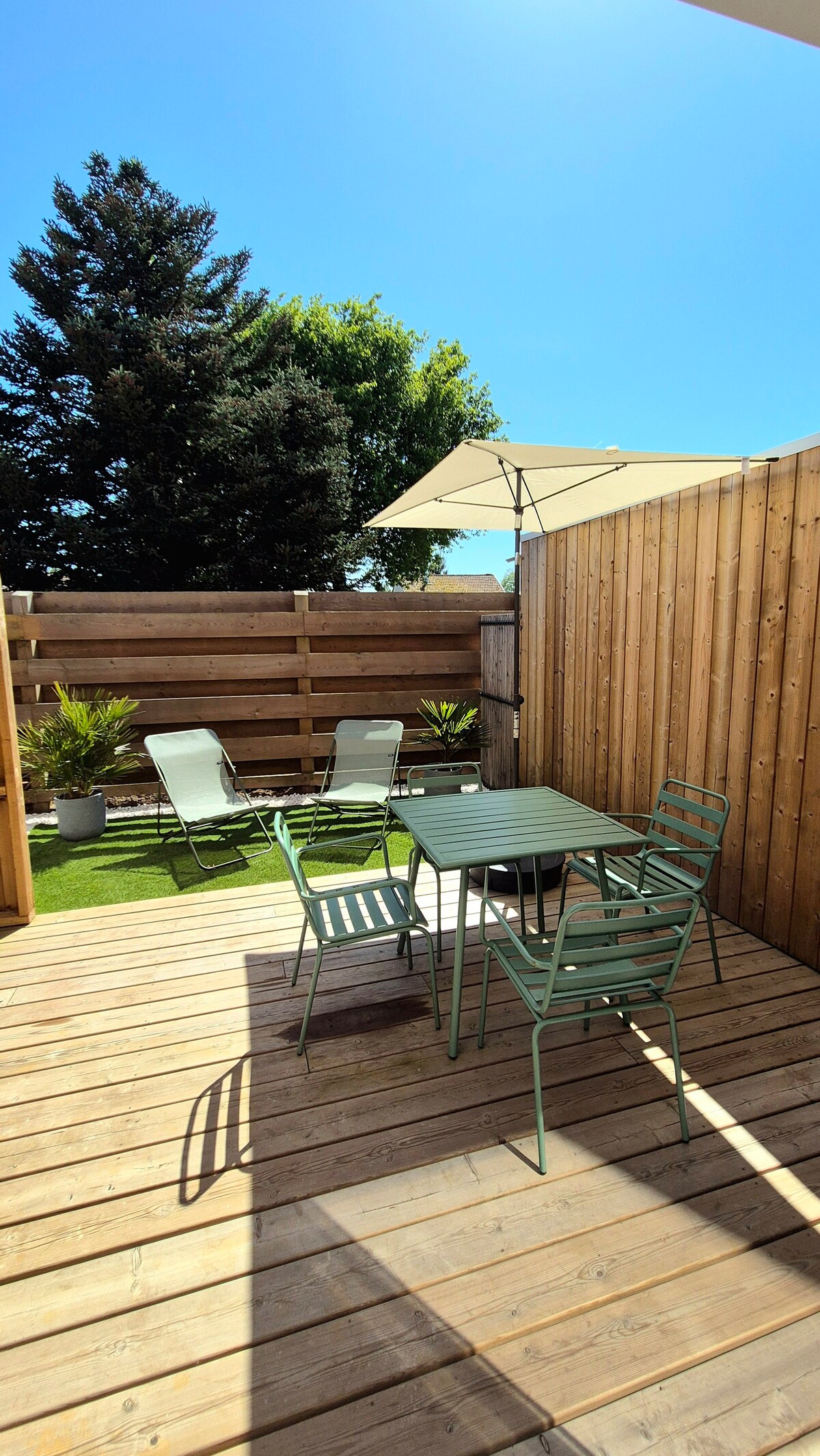 Détendez-vous dans ce logement calme et élégant. Profitez des douces soirées landaises sur la terrasse en face de la forêt de pins. Proche de la piste cyclable vous pourrez vous rendre en vélo au village ou à la plage du Cap de l'Homy à 7 km. Le bourg se trouve à 10 mn à pieds, vous y trouverez des commerces (boulangerie, boucherie et marché tous les jours en saison...). Le logement se situe sur un grand terrain derrière la maison des propriétaires, le tout sécurisé par un portail.