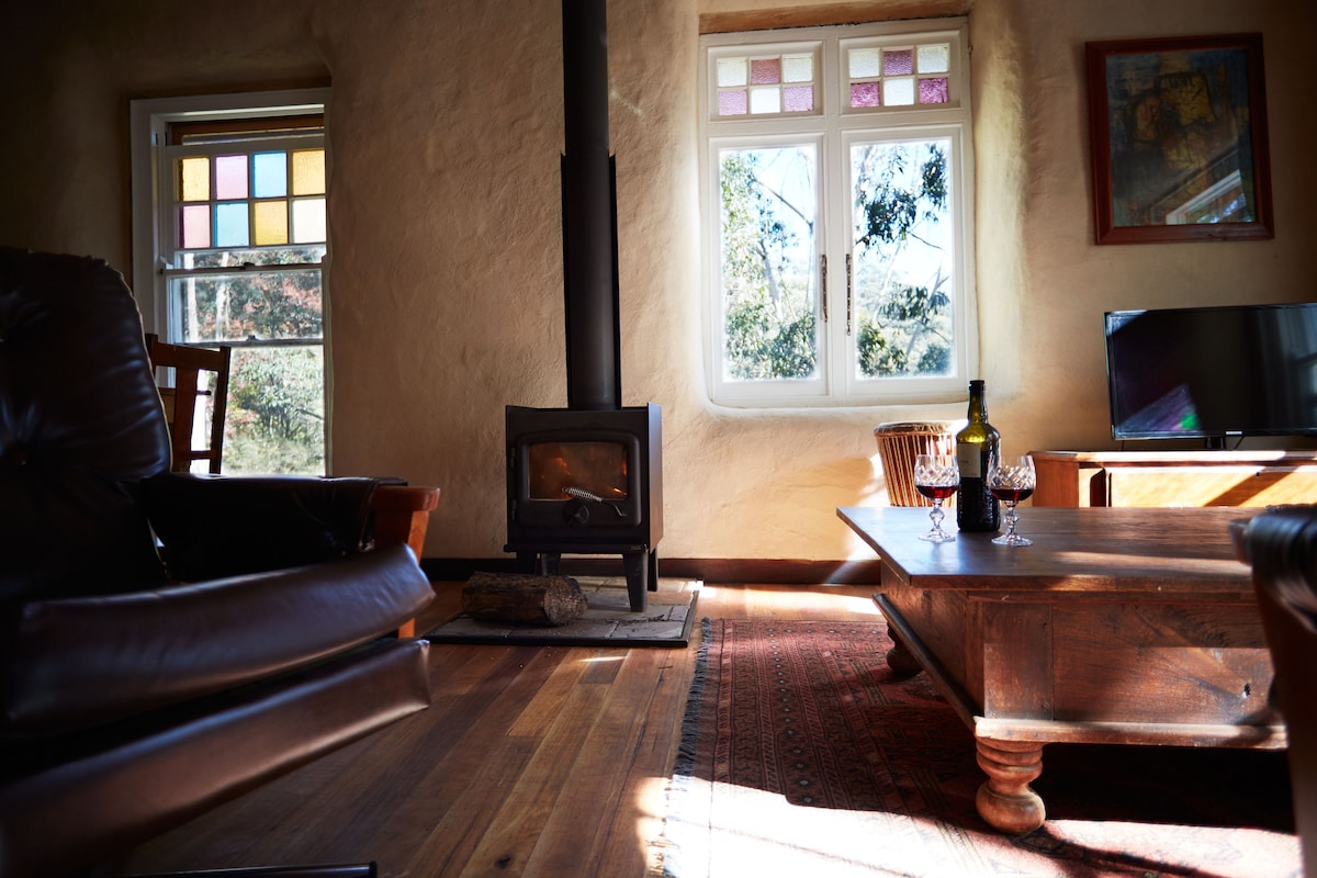Détendez-vous dans la belle chaleur d'un chalet en paille de balle unique après avoir passé la journée à profiter de la beauté naturelle époustouflante des montagnes bleues. Situé à Leura mais donnant sur la brousse, vous adorerez l'atmosphère chaleureuse et le confort de cette maison loin de chez vous.
