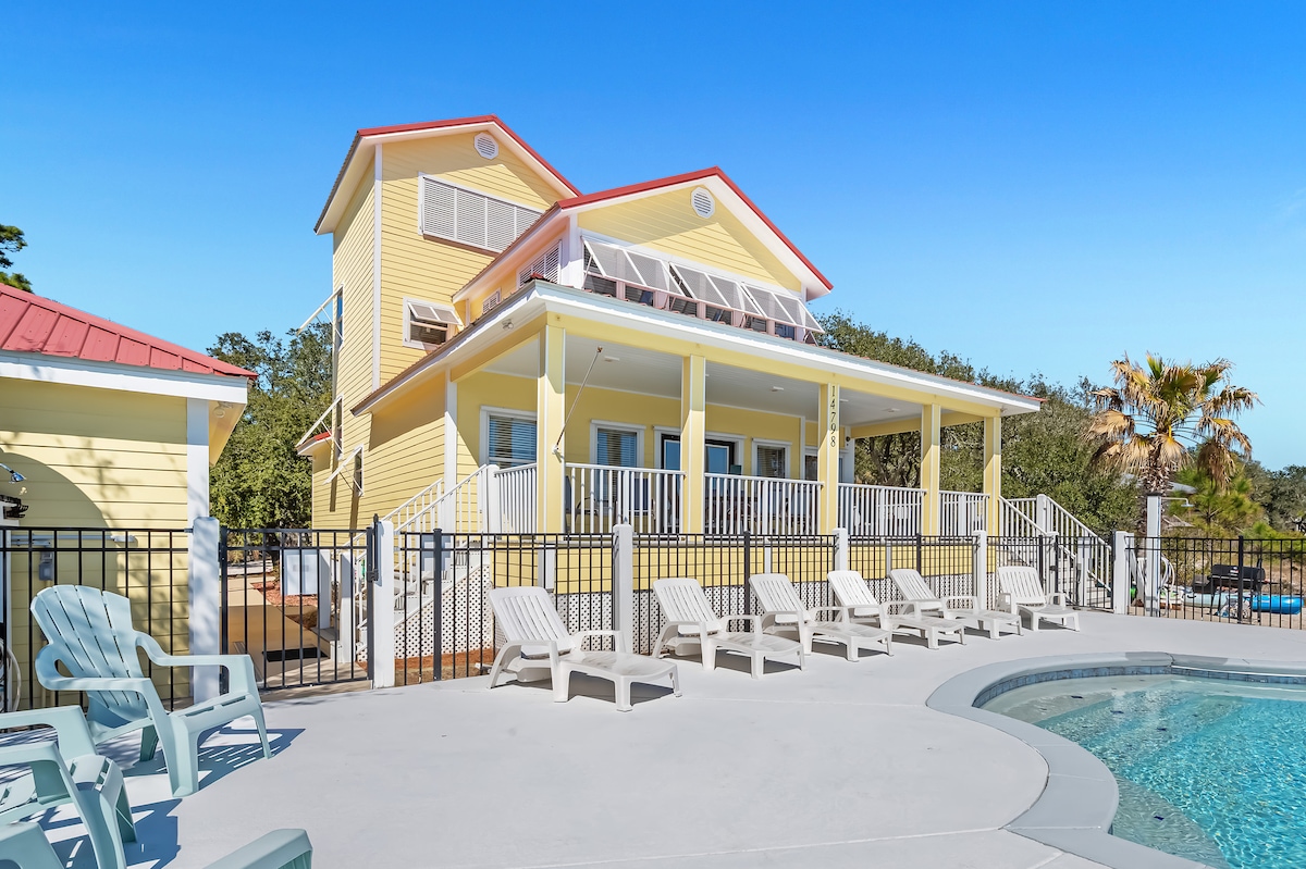 ✔ Jetée privée/plage ✔ Pêche ✔ Kayaks (2) ✔ Jeux de plage ✔ Véranda vitrée ✔ Wi-Fi rapide ✔ Grande terrasse ✔ Grande cour ✔ Barbecue au gaz ✔ Situé sur une route calme avec piste cyclable Vue sur le porche de la côte✔ du golfe ; à quelques minutes en voiture/à pied de l'accès à la plage ✔ À 4,3 miles de The Hangout ✔ À 5,0 miles de Waterville ✔ À 5,3 miles du parc d'État de Gulf Shores ✔ À 8,7 miles de The Wharf Veuillez nous contacter pour connaître les prix des snowbirds