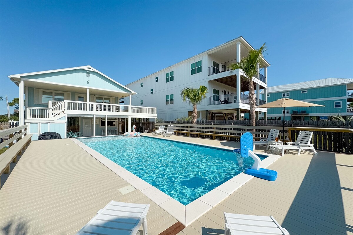 Bienvenue à Golden Hour ! Cette retraite récemment rénovée de Gulf Shores se trouve à seulement 100 pas de la plage avec accès privé. Profitez d'une vue imprenable sur l'eau depuis chaque chambre et de couchers de soleil à couper le souffle tous les soirs. 🏡 Capacité d'accueil : 10 personnes (8 adultes maximum) | 4 chambres | 3 salles de bain attenantes Cuisine 🍽️ spacieuse | Deux espaces de vie | Terrasse panoramique Équipement de 🌊 plage, paddle, kayak et plus encore ! Situé dans le paisible West Beach Blvd, votre escapade côtière parfaite