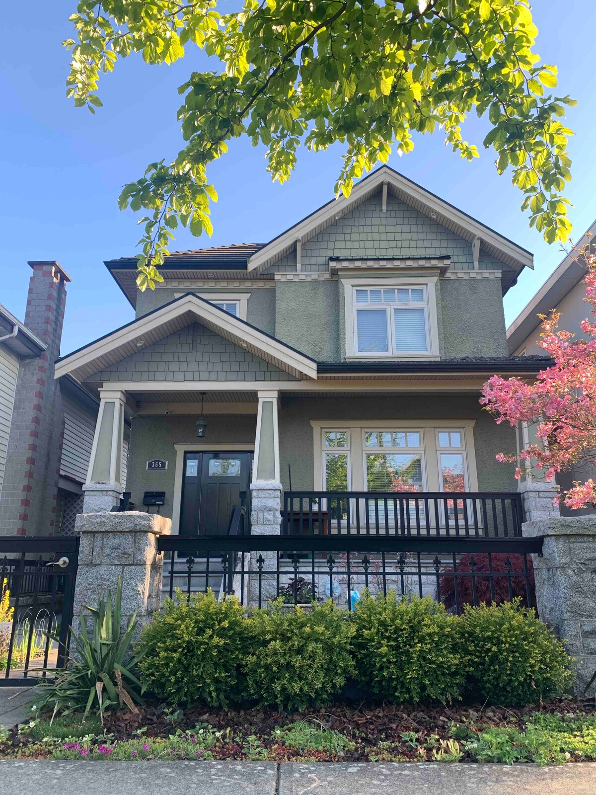 Maintenant avec une nouvelle pompe à chaleur et la climatisation. Maison urbaine moderne et relaxante idéalement située dans le centre de Vancouver. 1000 pieds carrés au rez-de-chaussée d'une nouvelle maison rénovée. Profitez de la vue panoramique sur la ville et les montagnes depuis la propriété, et des fleurs de cerisier au printemps. À distance de marche du magnifique parc Queen Elizabeth. À distance de marche des transports, des magasins, des loisirs, des restaurants et du marché fermier de Riley Park. Proche de la ligne Canada Line Oakridge 41e stand, des routes principales Cambie St. et Main St.
