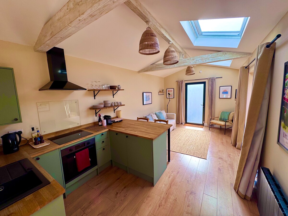 🌊 Flint Cottage est à seulement 3 minutes de la plage primée. 🛏 Deux chambres : la principale dispose d'un lit double, d'une douche attenante et d'un bureau ; la deuxième dispose d'un lit superposé avec un lit double en dessous, un lit simple au-dessus, ainsi que d'un bureau. 🌙 Les deux chambres et le salon ont des rideaux occultants, ce qui aide tout le monde à passer une nuit de sommeil reposante. 🛋️ Le salon dispose de deux canapés (dont un canapé convertible), d'une télévision OLED 48 pouces avec Google TV, PlayStation et jeux. 🌸 Une cour privée est remplie de plantes et dispose d'une table en mosaïque faite à la main.