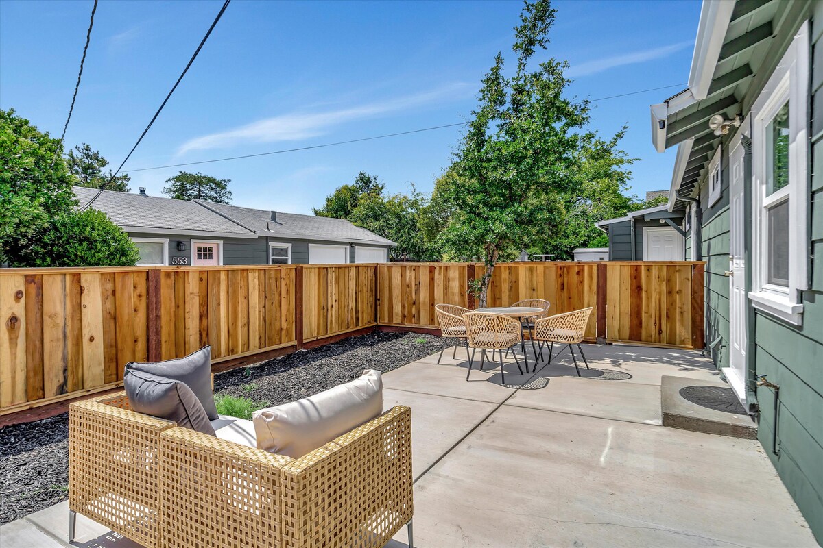 Profitez d'une expérience élégante à quelques pas du centre-ville ! Récemment modernisé, offrant une cuisine rénovée, une salle de bain rénovée avec Toto Washlet, un lave-linge/sèche-linge intérieur, une cour arrière privée, la climatisation et toutes les commodités nécessaires pour passer un séjour confortable. Lit Queen Size + canapé convertible. L'emplacement est à quelques pas du centre-ville de Livermore, qui offre des joyaux incroyables tels que Story Coffee, Range Life, The Press Cafe et un incroyable marché fermier ! Remarque : cette propriété est en duplex et a un mur mitoyen avec l'unité voisine.