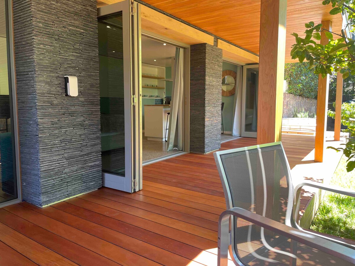 Notre studio s'ouvre sur un balcon de 40 m² avec vue panoramique sur la vallée de Hout Bay et les montagnes Helderberg au-delà. De grandes portes coulissantes disparaissent dans les murs, créant un flux intérieur/extérieur sans entrave tandis que la position surélevée protège votre vie privée. La salle de bain ouverte donne sur un jardin secret clos qui comprend une douche en verre sans cadre. Le logement dispose d'une kitchenette entièrement équipée et est entretenu tous les jours sauf les week-ends et jours fériés.