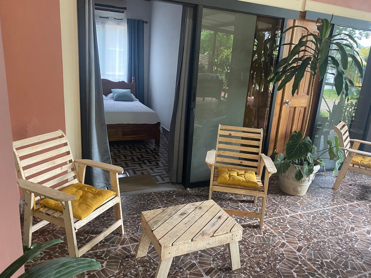 Le Panama rural vous invite à vivre l'expérience. Vivez-le, ne regardez pas juste ça. Lent et simple. À l'extérieur, vous êtes entouré de flore et de faune tropicales. À l'intérieur, votre suite a tout ce dont vous aurez besoin pour profiter de votre séjour, y compris une cuisine entièrement équipée, un lit confortable, la climatisation, l'eau chaude et le Wi-Fi. Plus important encore, la plage et les rivières ne sont qu'à quelques pas, tout comme de nombreux restaurants et bars. La propriété dispose d'un joli jardin avec des hamacs et des fruits tropicaux et une terrasse pour prendre votre café.
