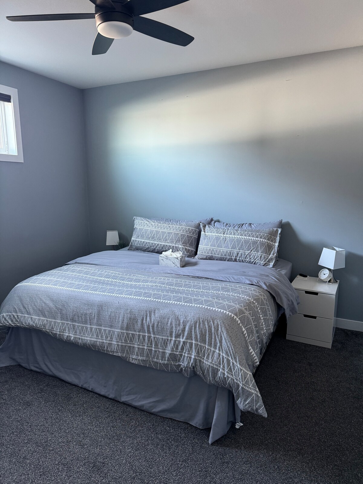 Take it easy at this unique and tranquil getaway. In a quiet neighborhood. Your own home away from home. With private deck and parking, close to all amenities: upgrader, ball diamonds, shopping, etc., this will fit perfect into your stay plans. Your private home boasts a king size bed, WIC, 3-piece bathroom, updated kitchen, living room with wifi for your electronics, DVD player, and a laundry room. Private deck and BBQ complete the package.