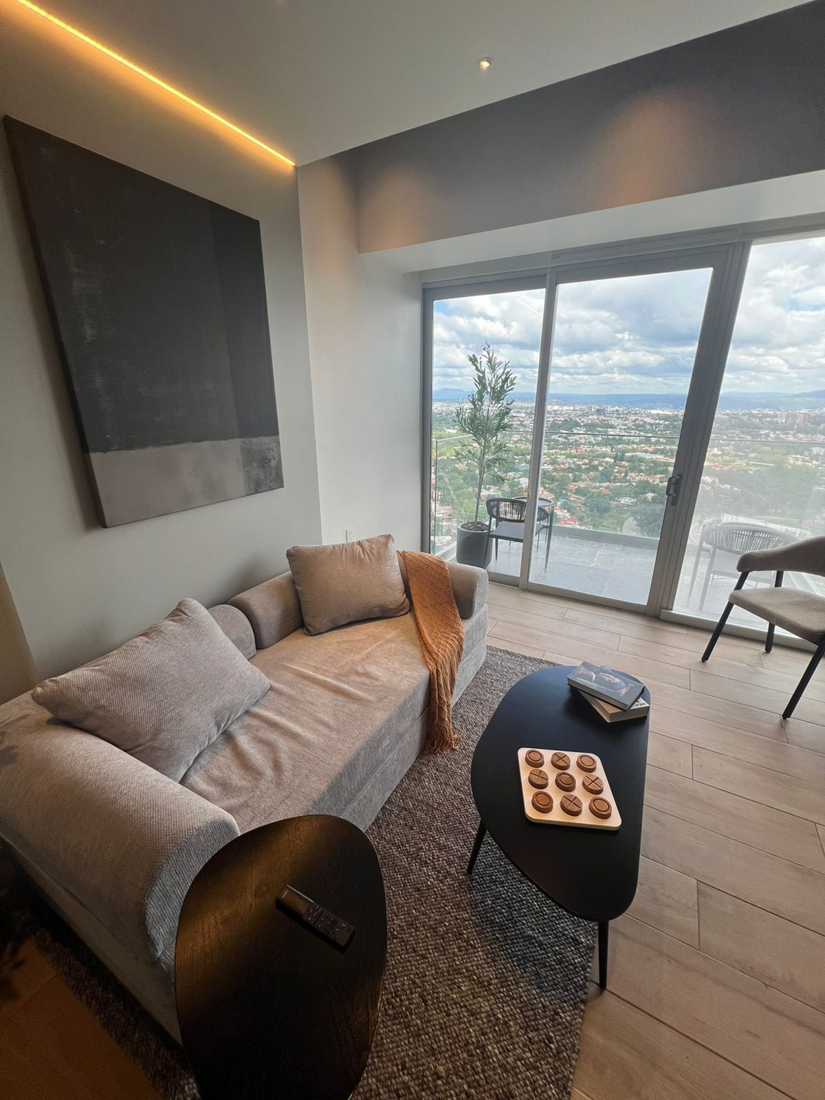 Appartement de luxe à Guadalajara, décoré par le bureau FNisino et avec des meubles fabriqués sur mesure par des mains tapatías. Séjournez dans l'un des bâtiments les plus exclusifs et les plus récents de Providencia, à proximité de la zone financière, de la forêt Colomos, du Punto Sao Paulo et à seulement 10 minutes d'Andares. Espace exceptionnellement confortable, qui dispose de tous les services et qui vous fera passer un séjour incroyable. Il dispose d'une sécurité 24/7, d'une piscine, d'une salle de sport, d'un coworking et d'un parking privé.