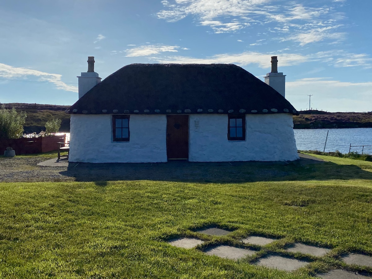The Isle Of South Uist, part of the Western Isles and located just south of Benbecula, is nothing short of breathtaking presenting stunning, scenery, natural and historic landscape, unrivalled outdoor access and diverse wildlife. This renovated Thatch Cottage is situated in a lovely area of the north end of South Uist and offers a quiet and peaceful location and is ideal for a very relaxing holiday.