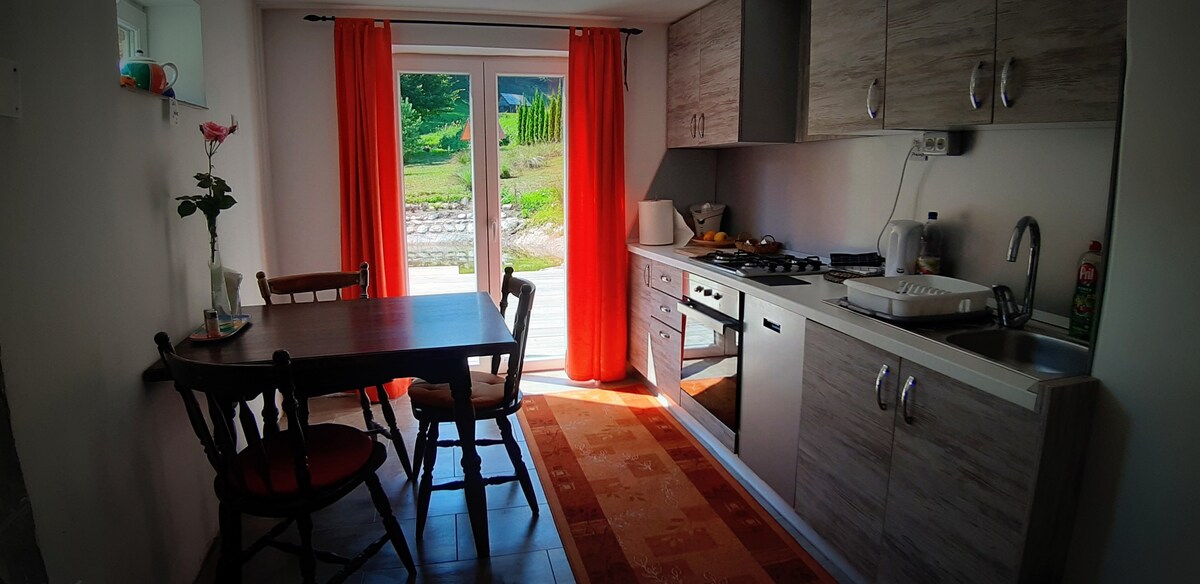 The apartment is located in a separate building in the yard of a secluded farm in the unspoiled nature of Pohorje. From the village of Mislinja, you ascend slightly to the homestead along a 1 km private macadam road. In the surrounding area you can walk through the mighty Pohorje forests and plains, cycle along countless forest roads and paths, climb in the nearby granite climbing area, explore the karst caves Hude luknje or relax in the local natural pool.