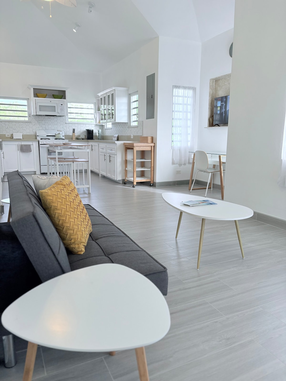Immerse yourself at Merrivale Residence – your stylish island escape! This modern, oversized studio is just a 3-mins from Rendezvous Bay Beach. Ideal for couples, solo travelers or digital nomads and features a sleek workstation, private patio, generous walk-in closet, fully equipped kitchen, washer/dryer, Wi-Fi, Netflix and central A/C. Enjoy comfort, tranquility, and convenience all in one perfect location.
