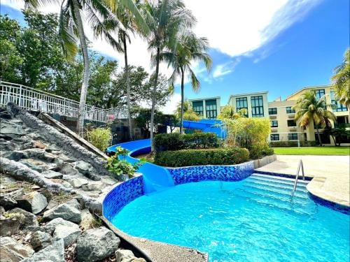 Welcome to Beachfront Paradise at Aquatika🌴 Family fun for everyone! 🌊 ☀️ Guests have access to resort-style amenities, including: 🏖️ Direct beach access 🏊♂️ 5 pools 💦 2 jacuzzis + large hot tub 🌊 River pool & water slide ⛳ Mini golf 🏀 Basketball court 🎾 Tennis & pickleball courts 🏐 Volleyball & soccer nets 🍖 BBQ areas 🛝 2 playgrounds 🚗 Free parking 🔐 24-hour security Sport equipment provided Located just 25 minutes from San Juan International Airport. Come enjoy paradise!